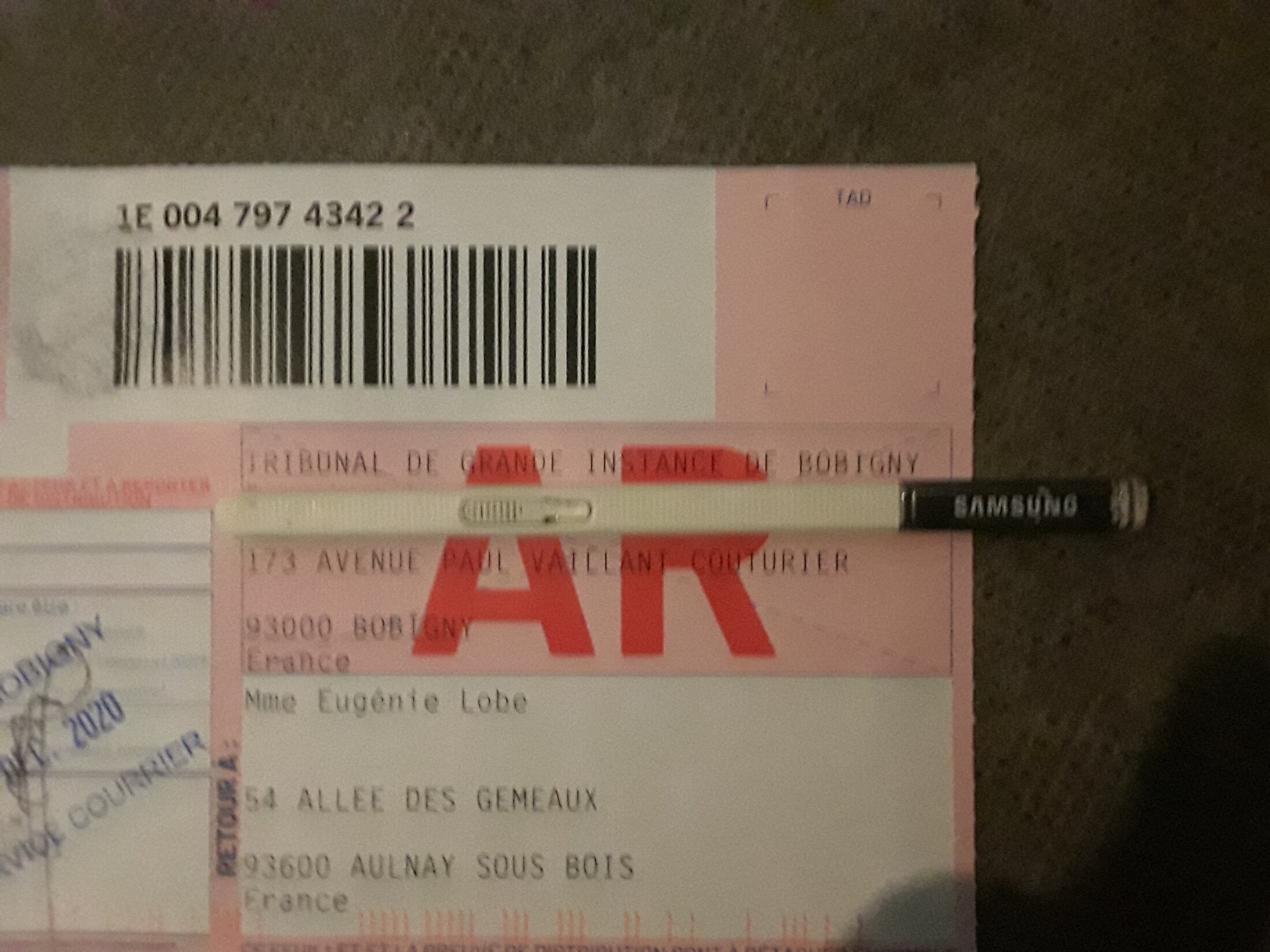 J'ai déposé une demande d'aide juridictionnelle au TGI de Bobigny. Envoyée en LRAR...