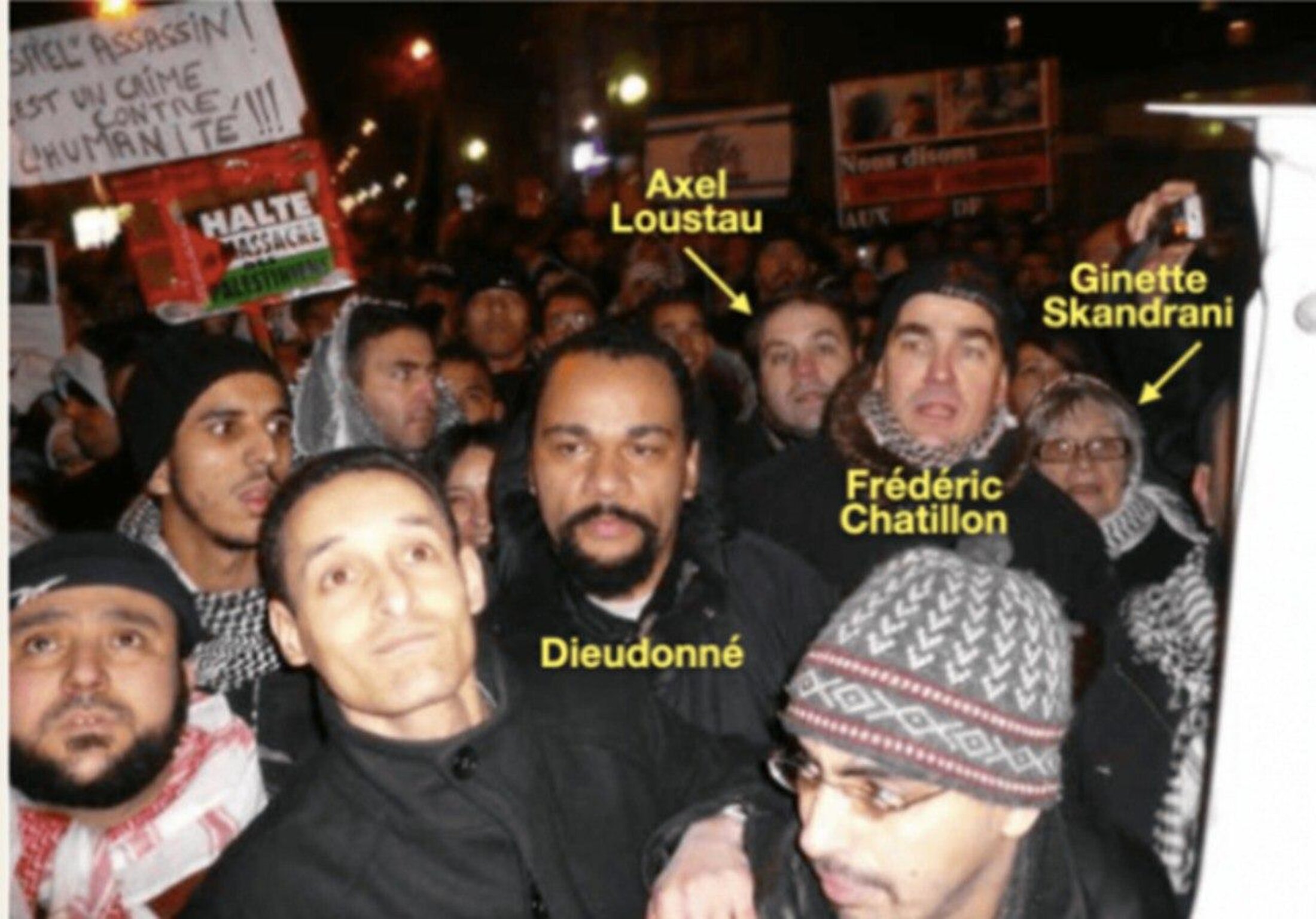 En janvier 2009, les deux ex-militants du GUD et conseillers de la présidente du RN ont ainsi participé à une manifestation contre le « génocide palestinien » organisée par le « Collectif Cheik Yassine », après que ce dernier ait été exclu d’un rassemblement contre l’opération « Plomb durci » en raison de sa réputation sulfureuse. Une photographie prise à cette occasion montre ainsi le conseiller régional FN d’Ile-de-France et le Président du micro-parti Jeanne marchant aux côtés de Dieudonné parmi les militants de ce mouvement dissous le 21 octobre 2020.