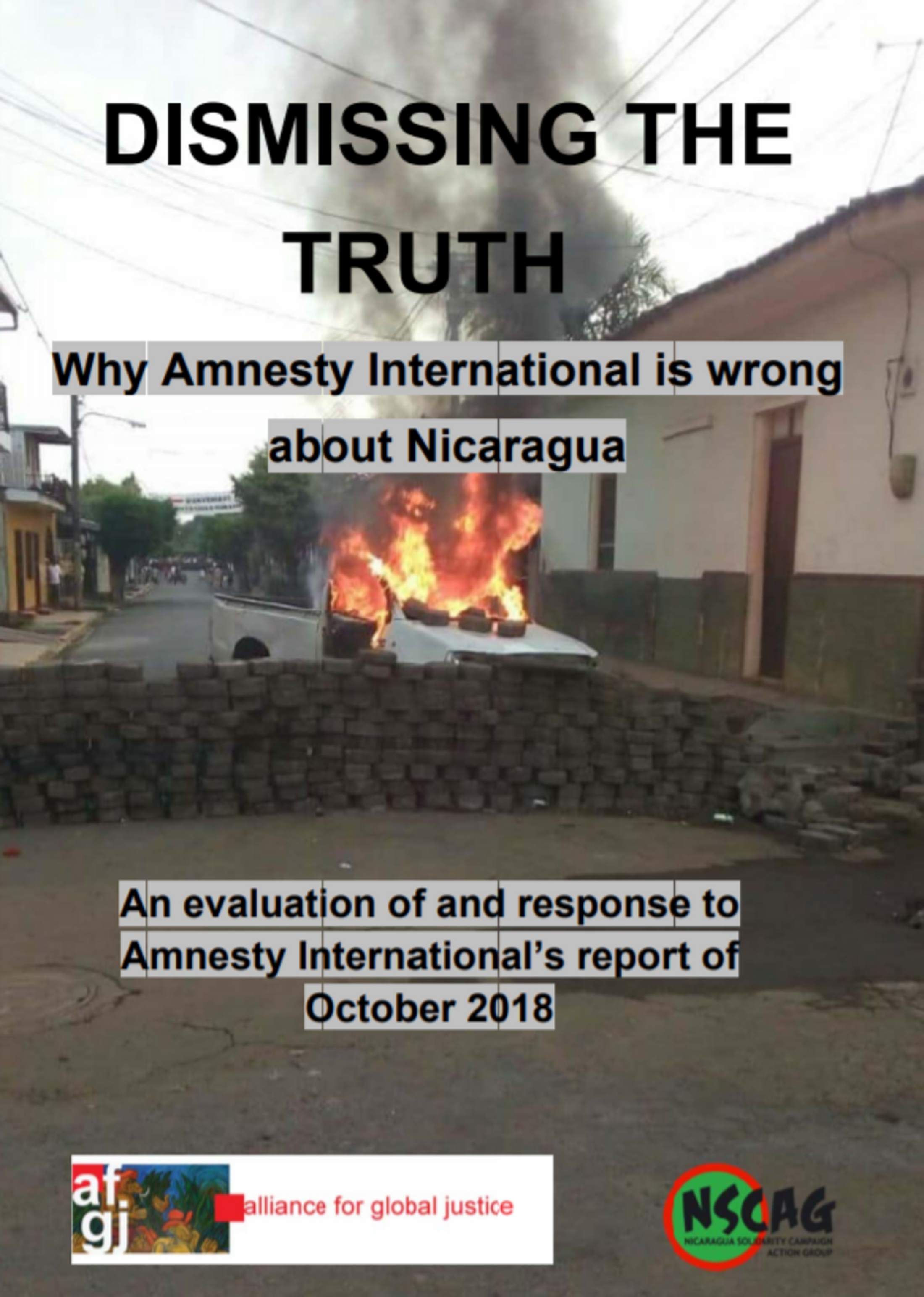 Pour montrer ce qu'une enquête impartiale aurait pu révéler, Dismissing the Truth montre les preuves de tous les décès liés aux manifestations qui ont eu lieu dans une région centrale du Nicaragua pendant la période couverte par Amnesty International. Il révèle que la moitié des décès enregistrés par les organismes locaux de défense des droits de l'homme et inclus dans les totaux cités par AI et d'autres organisations internationales n'avaient aucun lien avec le conflit. Sur les 16 décès liés au conflit, 15 étaient le résultat d'actions de l'opposition (cinq policiers, six partisans ou travailleurs du gouvernement et cinq citoyens non affiliés).