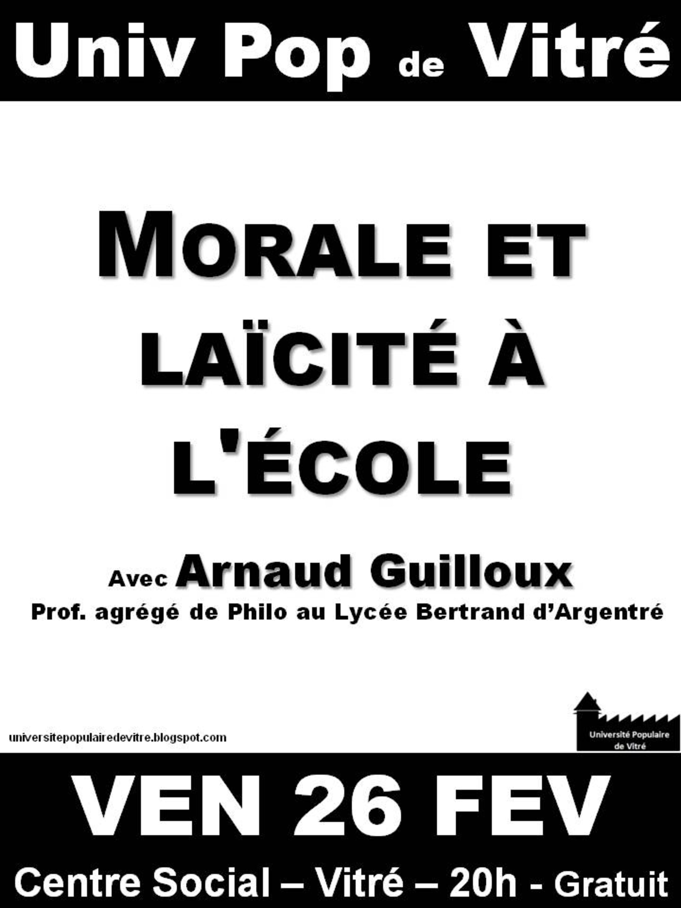 "Morale et Laïcité à l'école", le 26 février, 20h à Vitré(35)