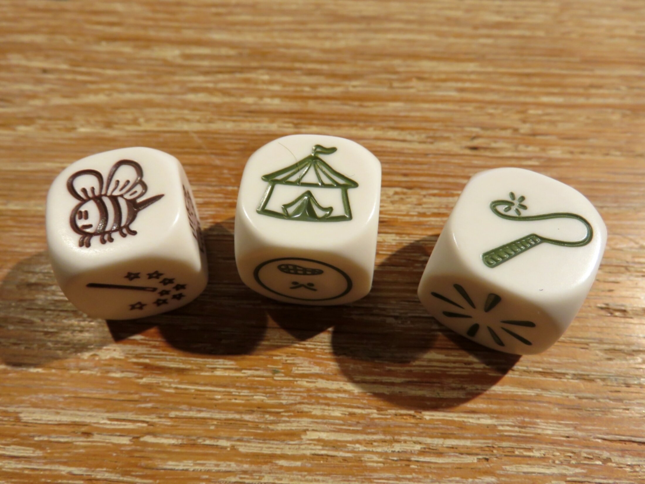 Jeter trois dés, faire un dessin! (matériel Rory's Story Cube)