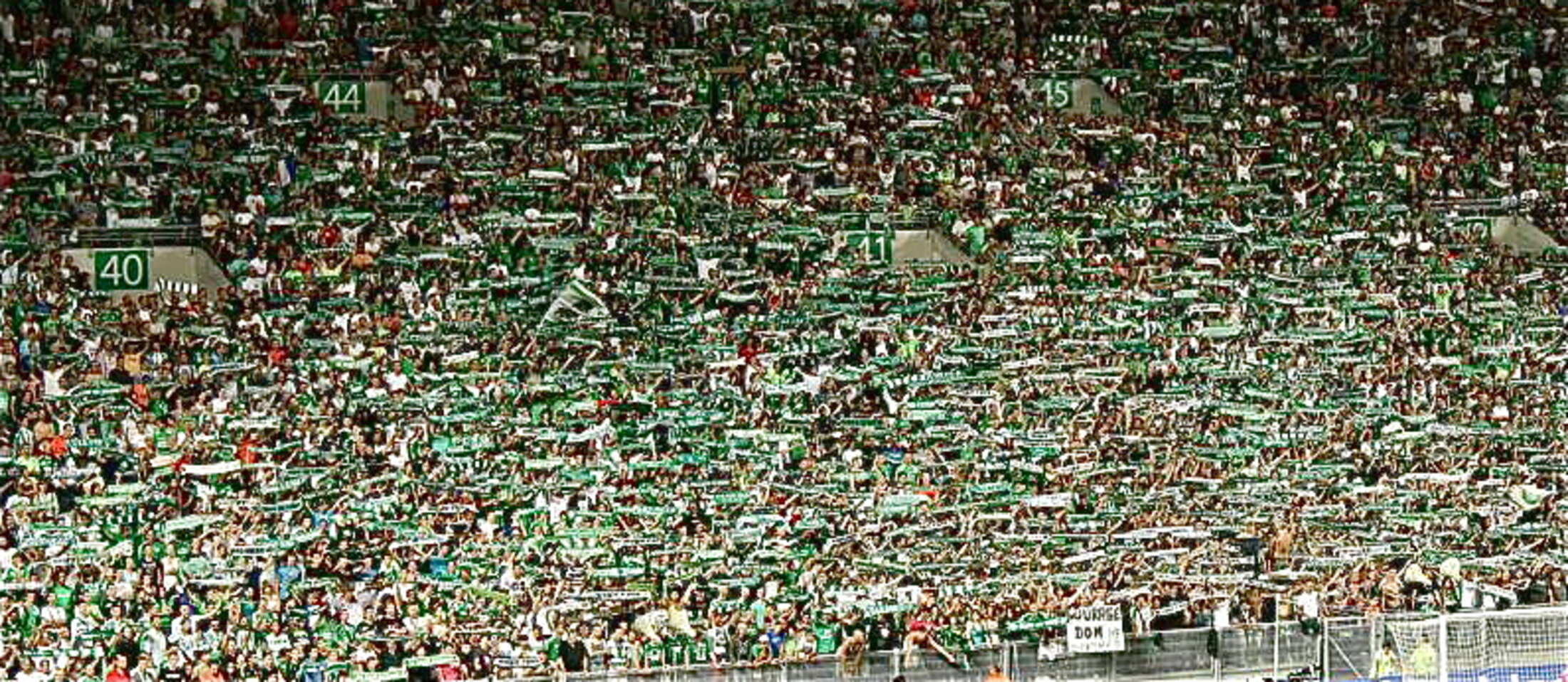 Dans les villages de France il y a souvent un bistrot ouvert le soir où quelques coyotes se rassemblent pour boire un verre et parfois regarder un match à la télé. A Saint-Etienne, ce troquet c’est Geoffroy-Guichard : on y vient pour se chauffer les tripes et la voix, on y vient pour chanter, pour rire et pleurer, pour encourager et pour chambrer, on y vient pour être vivant, on y vient parce qu’on se trouve au coeur de la ville, et que sous le gazon il y a le charbon, les couloirs séculaires, on y vient parce que c’est la famille rassemblée, celle du grand-père couvert de mourine dans le puits Couriot, celle de la mère assemblant les pièces d’une carabine chez Manufrance, celle des enfants sur les bancs de la fac Jean Monnet ou de l’école du design, celle aussi de Bernard le chanteur à boucle d’oreille et à biceps tatoués qui a «limé de ses mains le creux des évidences» .