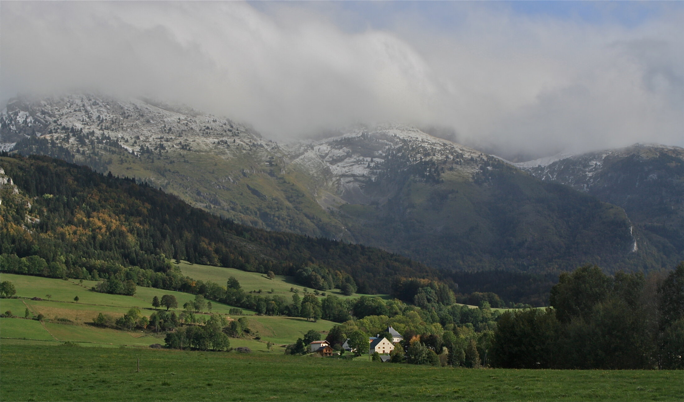 Plus près du ciel, à mille mètres, j’ai ma promenade préférée. Ce n’est pas de l’escalade ou du sentier vertical comme les aime l'homme des "Etages", village où il réside, mais une plate randonnée dans la plaine de Lans à Villard. Une huitaine de kilomètres en longueur, quatre ou cinq en largeur. Jadis, à l’ère glaciaire, il y avait en ce lieu un lac transparent et quelques icebergs en goguette. Aujourd’hui le plan d’eau glacé est devenu vaste berceau d’altitude, avec sa couette de prairies tendres, ses collines pour oreillers et sa parure enchantée de fayards et de résineux.