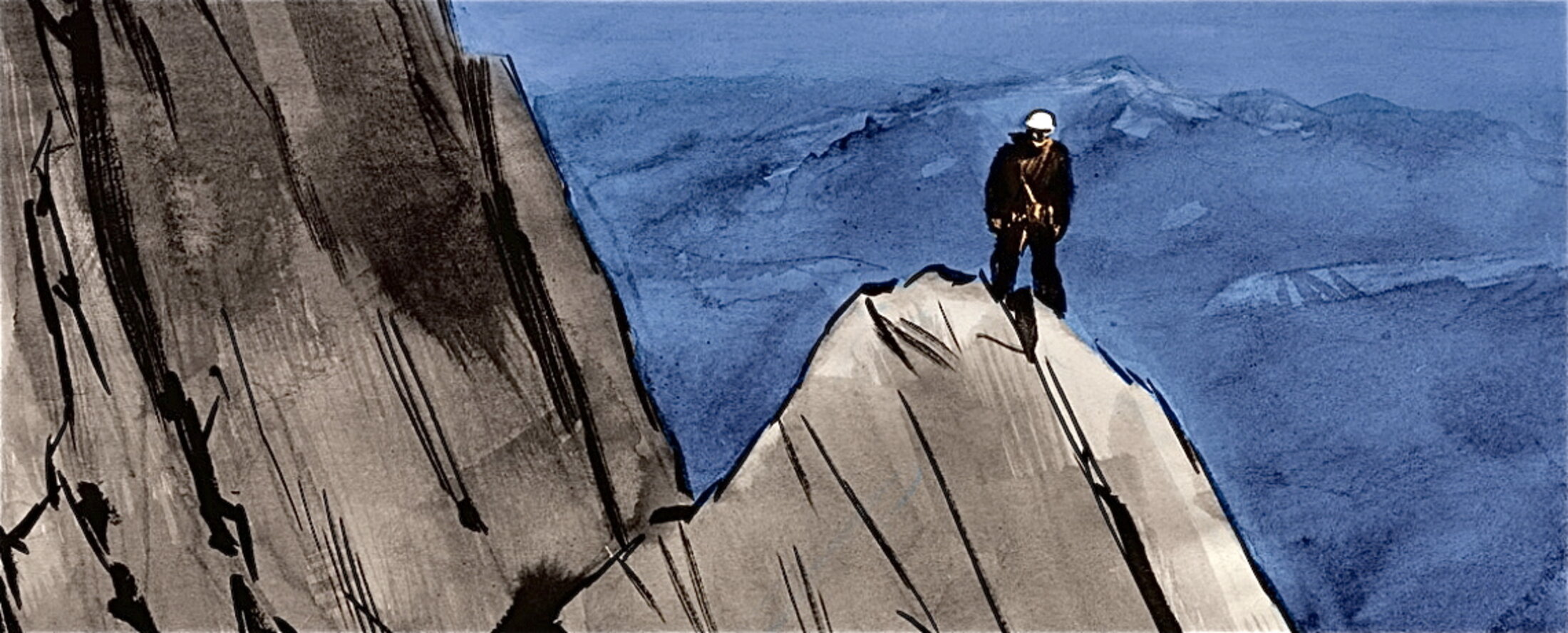 Un débarquement s’opère sous mon crâne. Une gigantesque armada prend possession de mes facultés ou de ce qu’il en reste : c’est une flotte chahutée, une légion d’images superposées, une escadre de pics, d’aiguilles, de dents et de dômes, un flot de sensations alpines, un abordage sous la point du Toc ! Je suis barge, plein à ras-bord de cordes, de pitons, de piolets et de mousquetons. J’écope la peur, la sueur, la douleur. Je me lance à mi-cuisses dans le névé, casqué, botté, à fleur de paroi, sur une vire étroite, talons dans le vide, je franchis les obstacles, la crevasse, j’évite les projectiles, les cailloux, les séracs ... C’est mon jour le plus long, et si j’arrive au sommet, ce sera mon D-Day le plus beau...