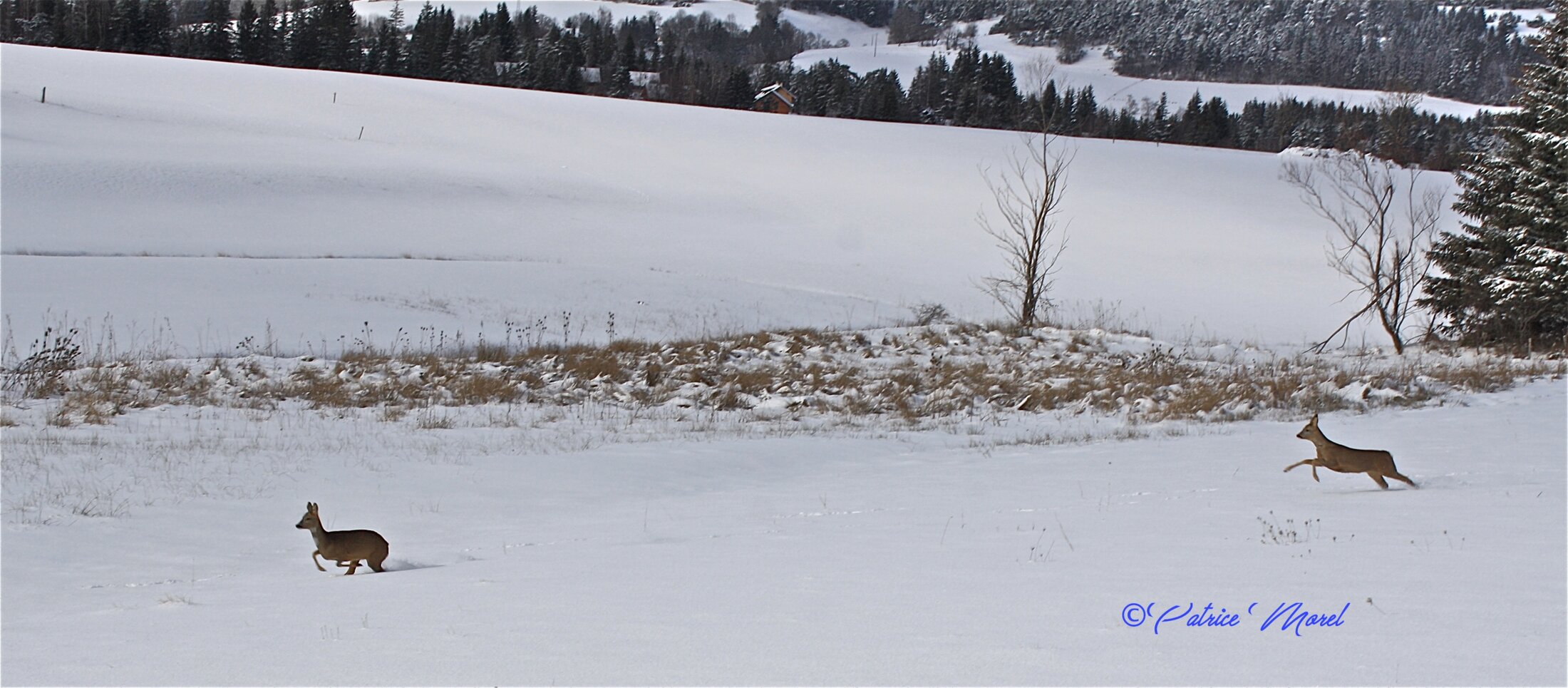 Même les animaux sortent du bois ! Les ongulés ondulent à découvert, un coup dans le zig, un coup dans le zag, la biche fend la bise, le faon folichonne, un clebs inquiétant me barre la route !