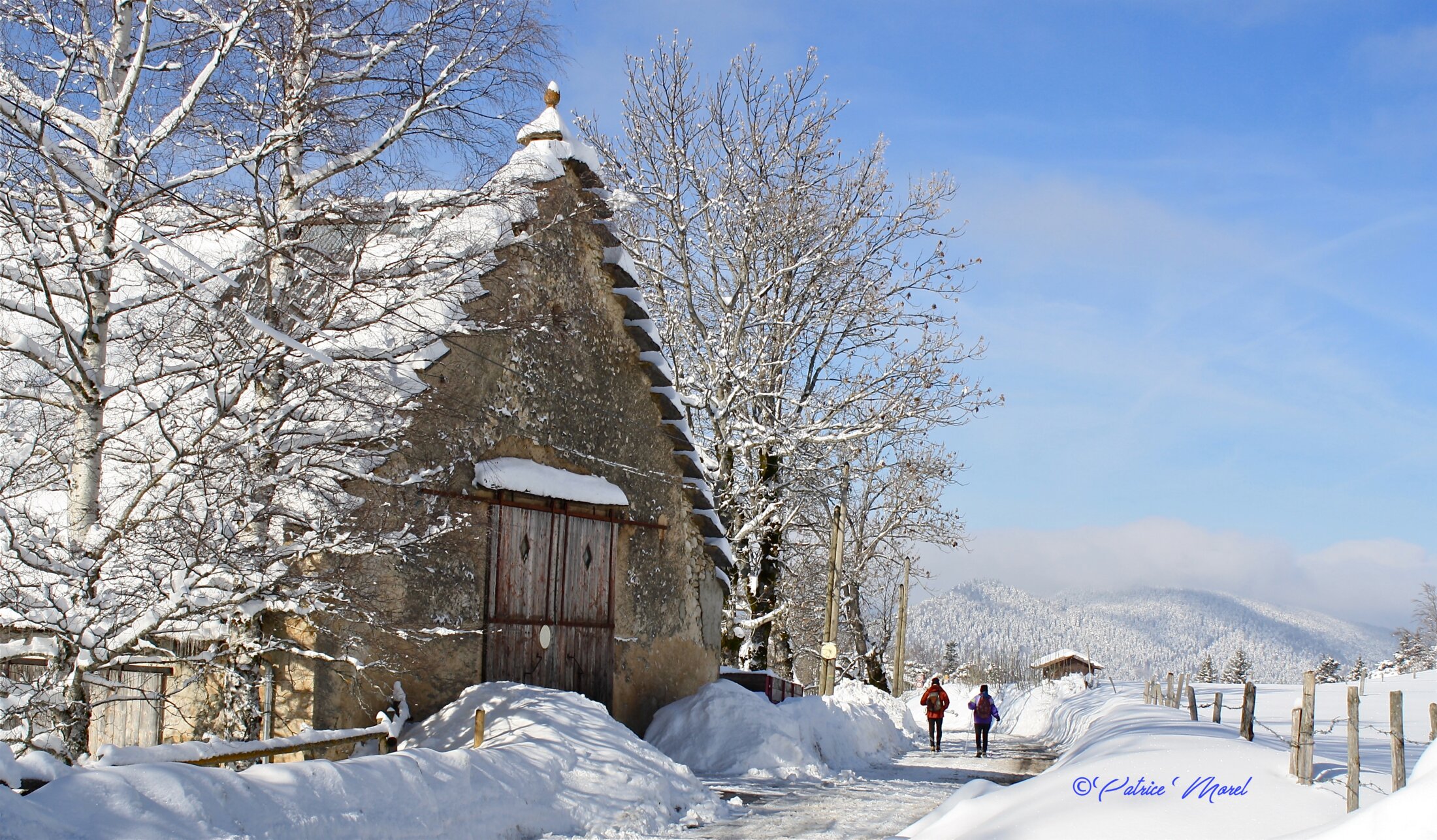 Imaginez... Vous avez le coeur au chaud sous la doudoune, les oreilles dans la laine du bonnet, vous sentez le crissement de vos semelles sur le glaçage immaculé, puis vous plongez dans le champ à mi-mollets, vous ouvrez à pas lents un couloir de plumes, l’édredon s’écarte, vous faites la trace, ambiance éthérée, légereté, éternité... Vous percevez les gémissements de la bise dans les grands sapins de nouveau blanchis. Vous discernez le murmure du ruisseau recouvert d’un large plaid vierge. C’est le nirvana, le bonheur palpé, la félicité caressée !