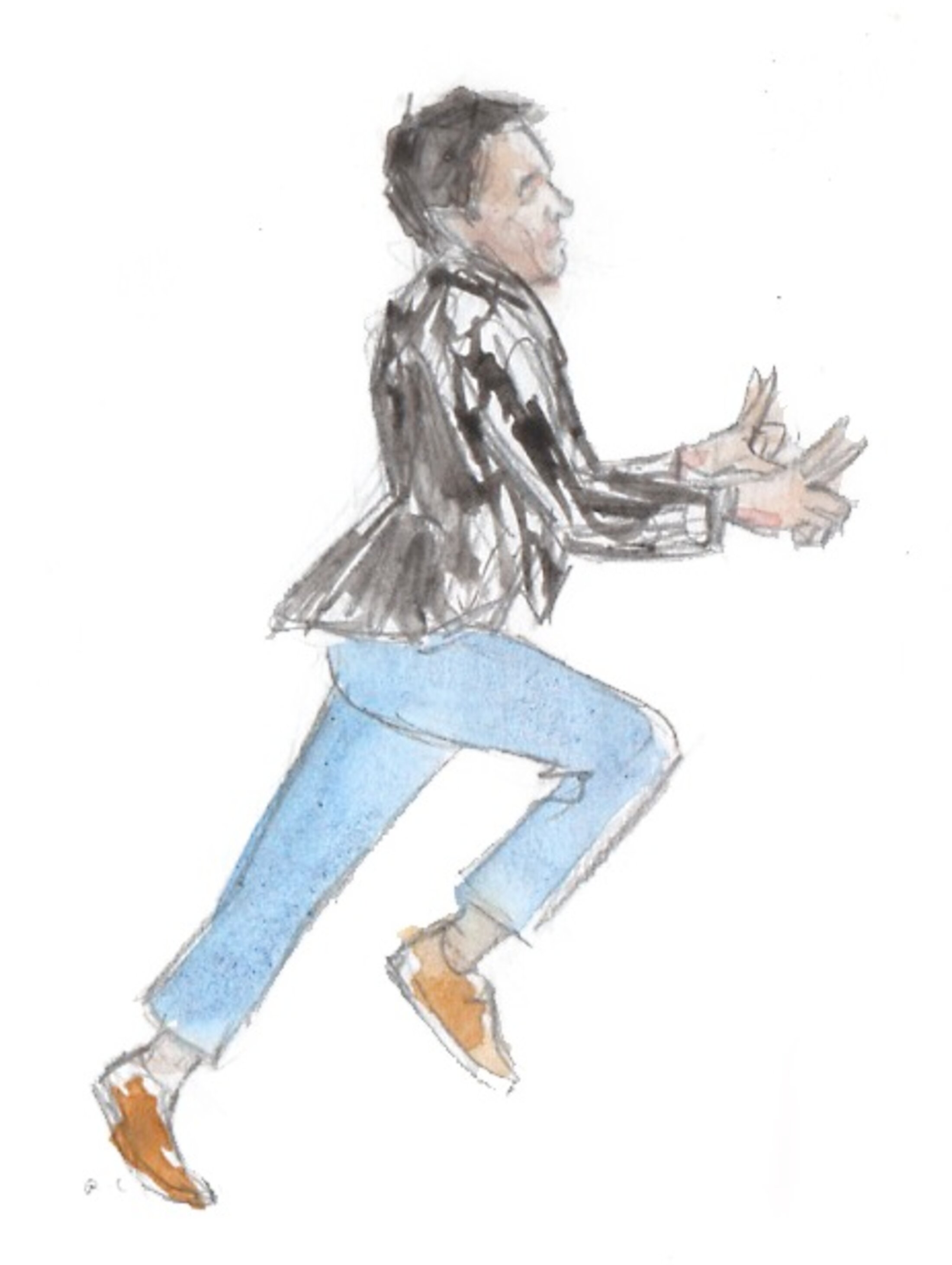 Un exemple entre mille: vers la fin du spectacle, il se lance dans une chorégraphie sur une "musique américaine" qui part sur un rythme très élevé, une minute, deux minutes, et son visage insensiblement exprime la fatigue et la lassitude de celui qui trouve que la danse commence à durer un peu trop...Irrésistible.