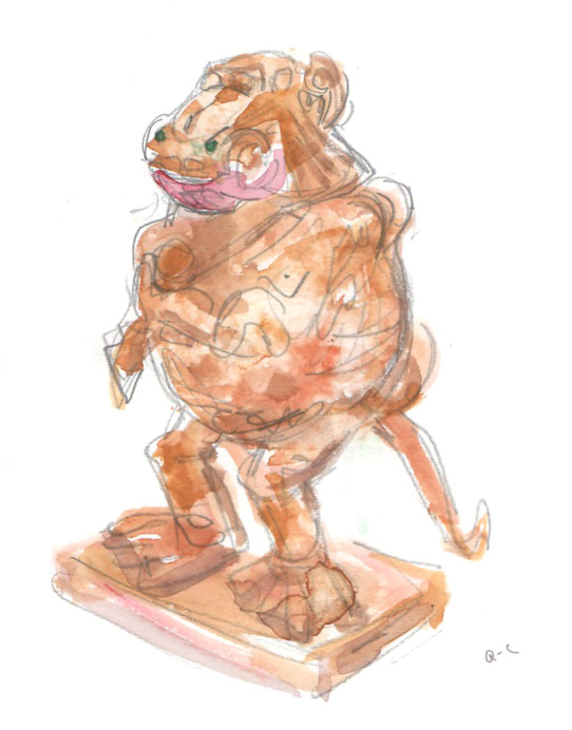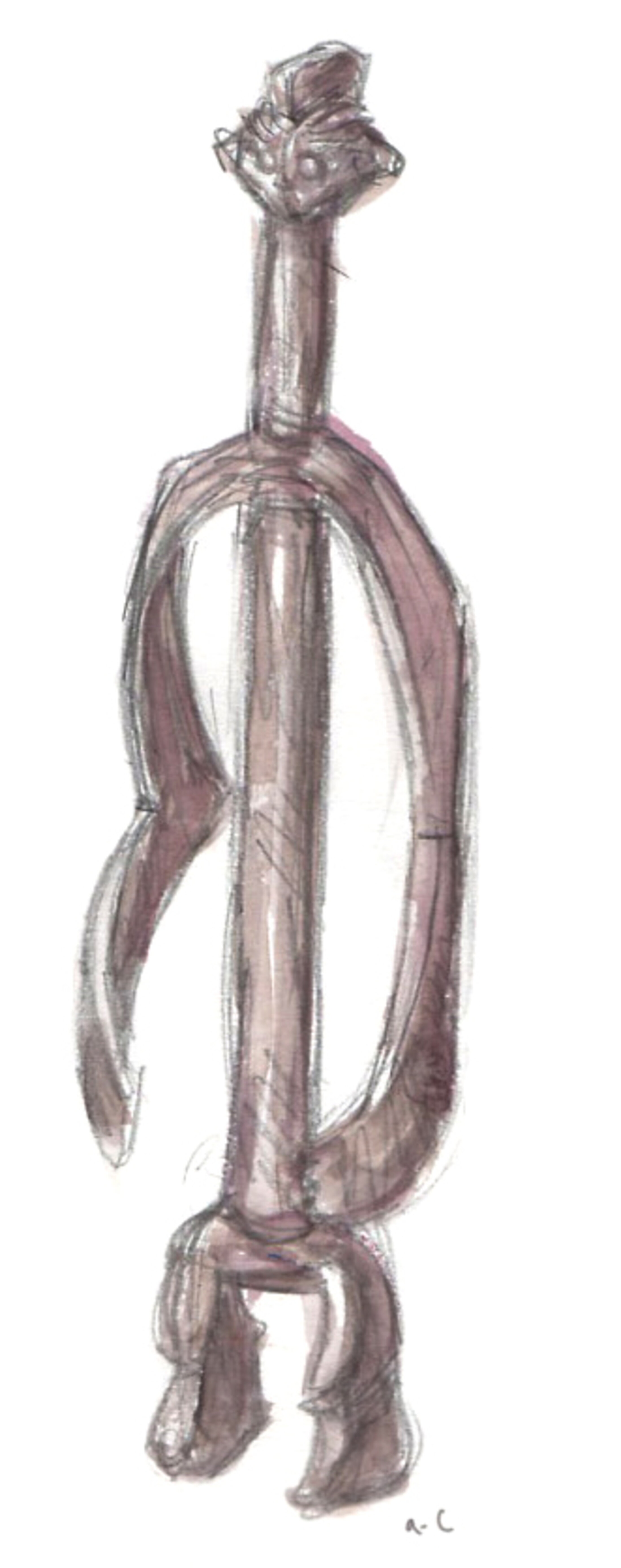 On voit notamment un objet étonnant, fascinant, incroyable. Sa forme rappelle un peu celle de la mandragore, si prisée jadis de nos braves sorcières occidentales. On dirait un homme avorté. Ou un gros têtard. Une présence sarcastique et menaçante en émane. Ainsi qu'une étonnante force d'attraction. On reste cloué.