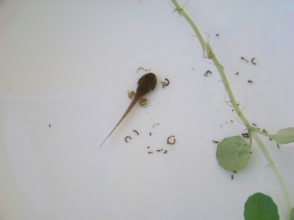 Un têtard, un végétal et du caca de têtard | photo de tarchamps | sous licence Creative Commons, Flickr.com