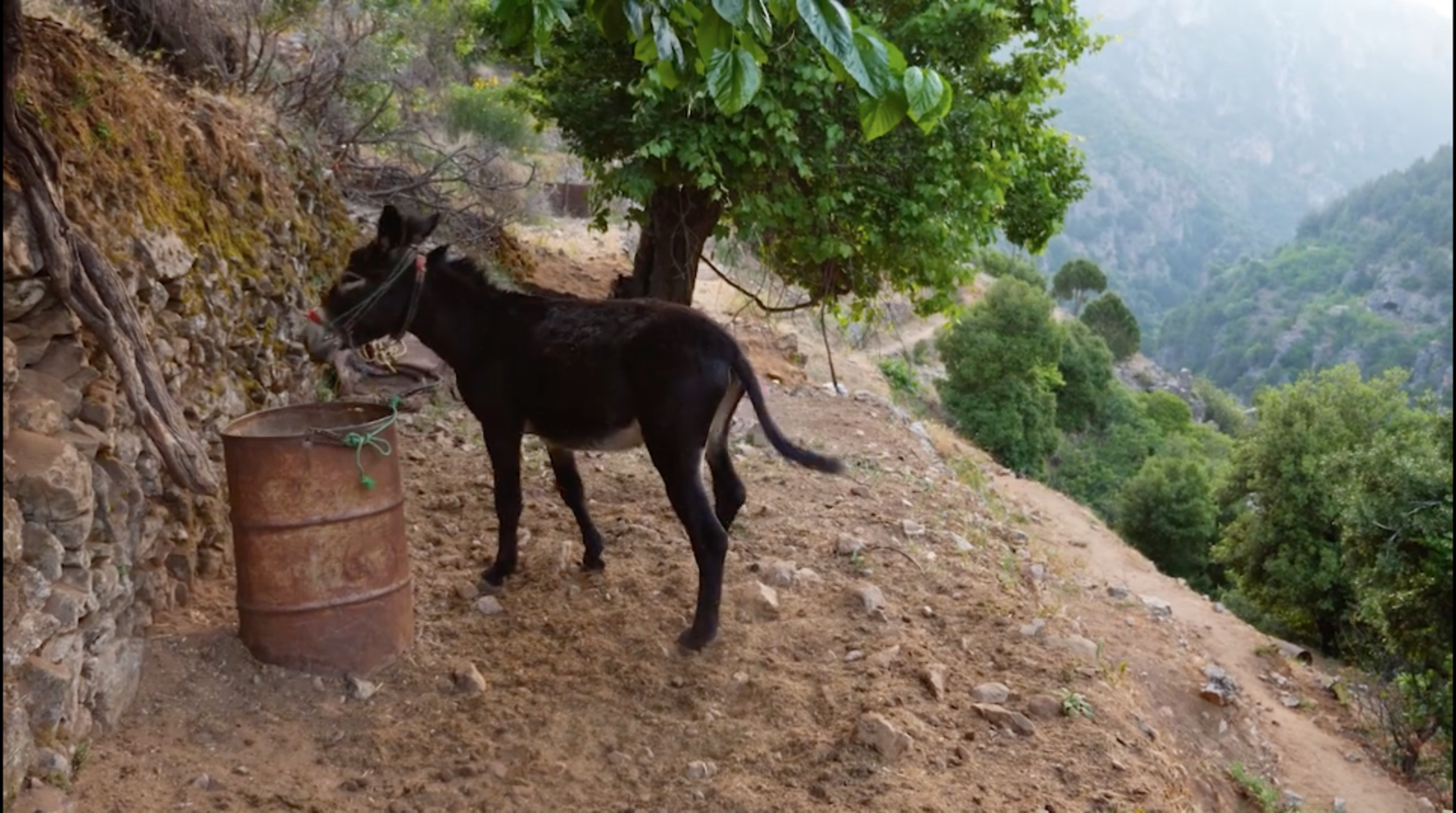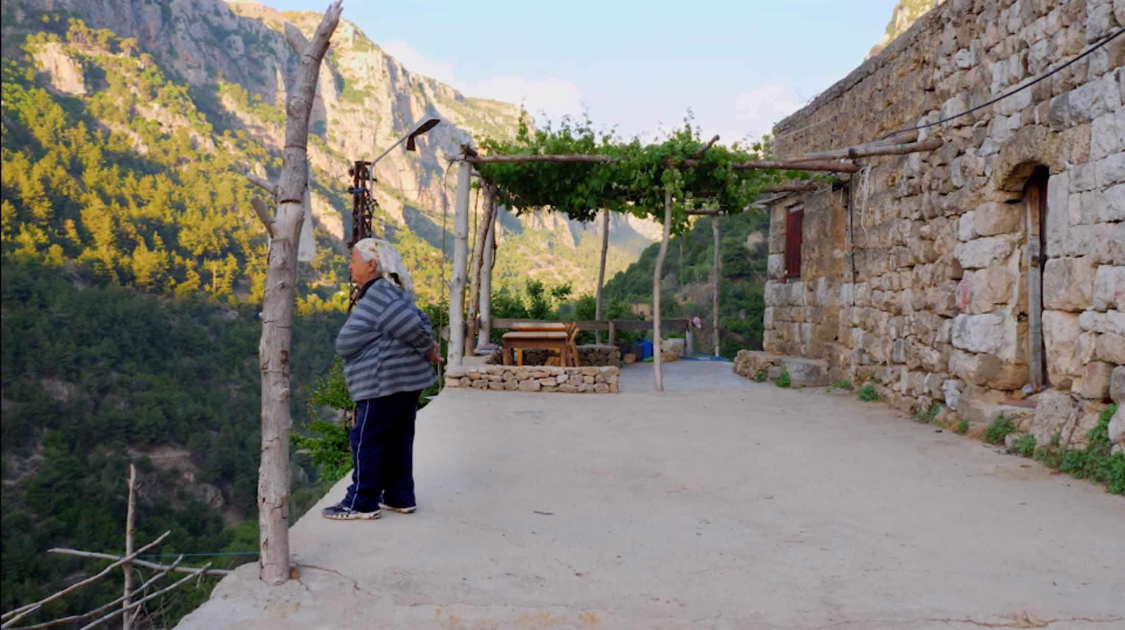 Ce qui est d’abord beau et frappant dans ce film, c’est qu’il nous place littéralement dans une maison-belvédère accrochée à flanc de montagne dans la vallée de Qadisha, au nord du Liban. Il nous y place et nous y fait attendre quelque chose qui doit arriver dans l’espace commun qu’il ouvre entre la salle où nous sommes assis et la vallée où les images et les sons ont été enregistrés. L’image d’Abbas Fahdel est relation (contact et transitivité) plus que représentation. Elle nous invite à observer, à travers le film, la vie organique et végétative d’une nature somptueuse et les mouvements des corps vivants qui l’habitent. Il nous fait aussi entendre, sur une bande son très riche, les bêlements, caquetages, hennissements et paroles que lancent ces corps vivants. C’est du cœur de cette observation éthologique soigneusement enregistrée que naît une histoire, fine et simple, d’amour et d’exil.
