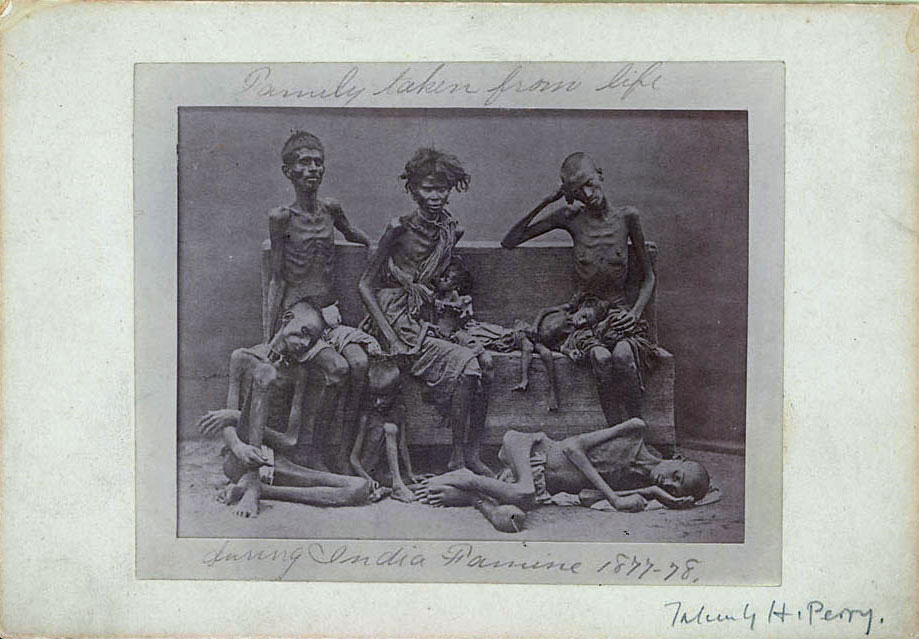 Victimes de la famine en Inde, 1877. British royal identity services.