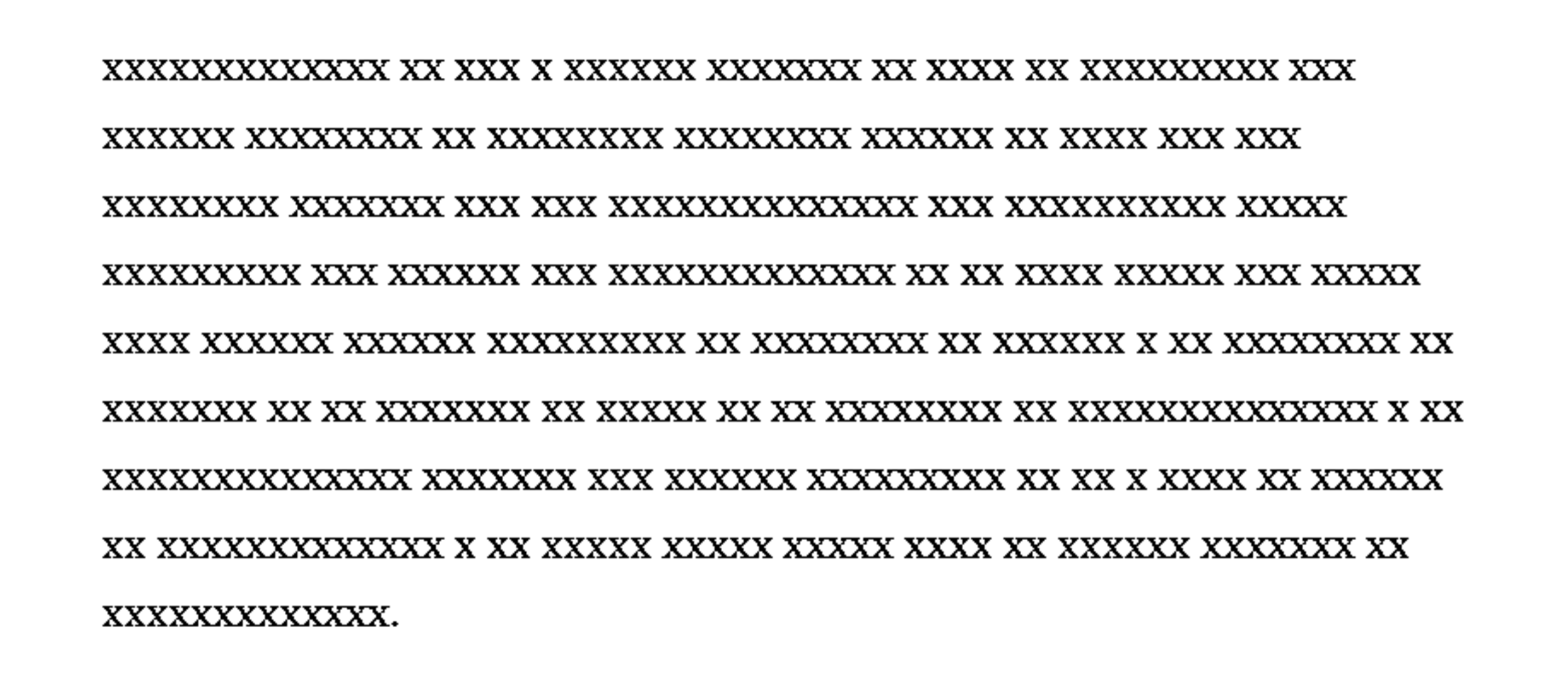 Considérez l'alinéa précédent qui commence par “factuellement” et se termine par “signification”, qui comporte (selon l'outil statistique de mon traitement de texte), 539 caractères et 89 mots (pour le nombre de mots on dira que c'est exact, pour le nombre de caractères, sans les signes de ponctuation et les espaces il y en a 418). Sur l'écran de mon ordinateur cet alinéa ressemble à ceci: