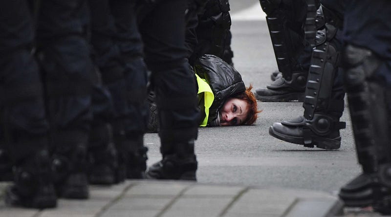 Pour défendre la démocratie il faudrait, à en croire les propos tenus sur les plateaux de télévision, rester chez soi lorsque l’on déploie l’arsenal policier, et ne pas demander quelconque mesure sociale ou démocratique au gouvernement. Malgré la violence du système comme génératrice de toutes les violences, les gilets jaunes devraient recourir à une “colère polie” et supposément responsable, devant ainsi déclarer les événements en préfecture, admettre les violences policières et nommer des représentants bien élevés. L’une des craintes de l’ordre libéro-répressif, en plus de la redistribution des richesses, est la redistribution du pouvoir. Est systématiquement battu en brèche le souhait exprimé par certains gilets jaunes d’avoir une emprise sur les décisions, un rôle au sein de la démocratie. Davantage d’horizontalité dans notre fonctionnement démocratique amputerait l’exécutif et le médiatique d’une partie de leurs influences.