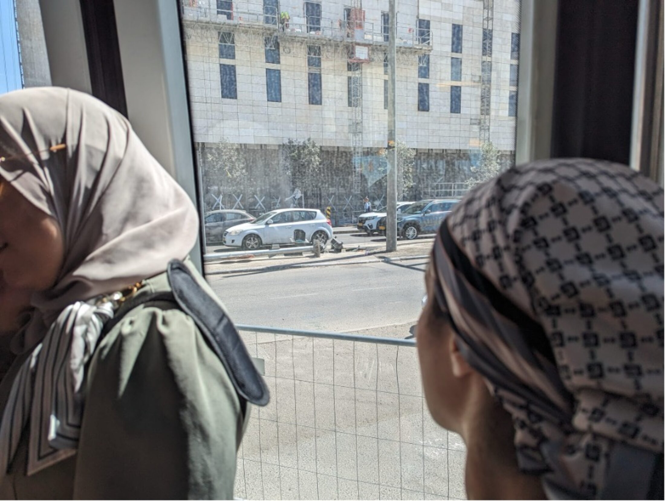 Le tram entre Jérusalem Ouest et Est. Là où se côtoient à une distance réservée à l'intimité, les femmes musulmanes et juives.