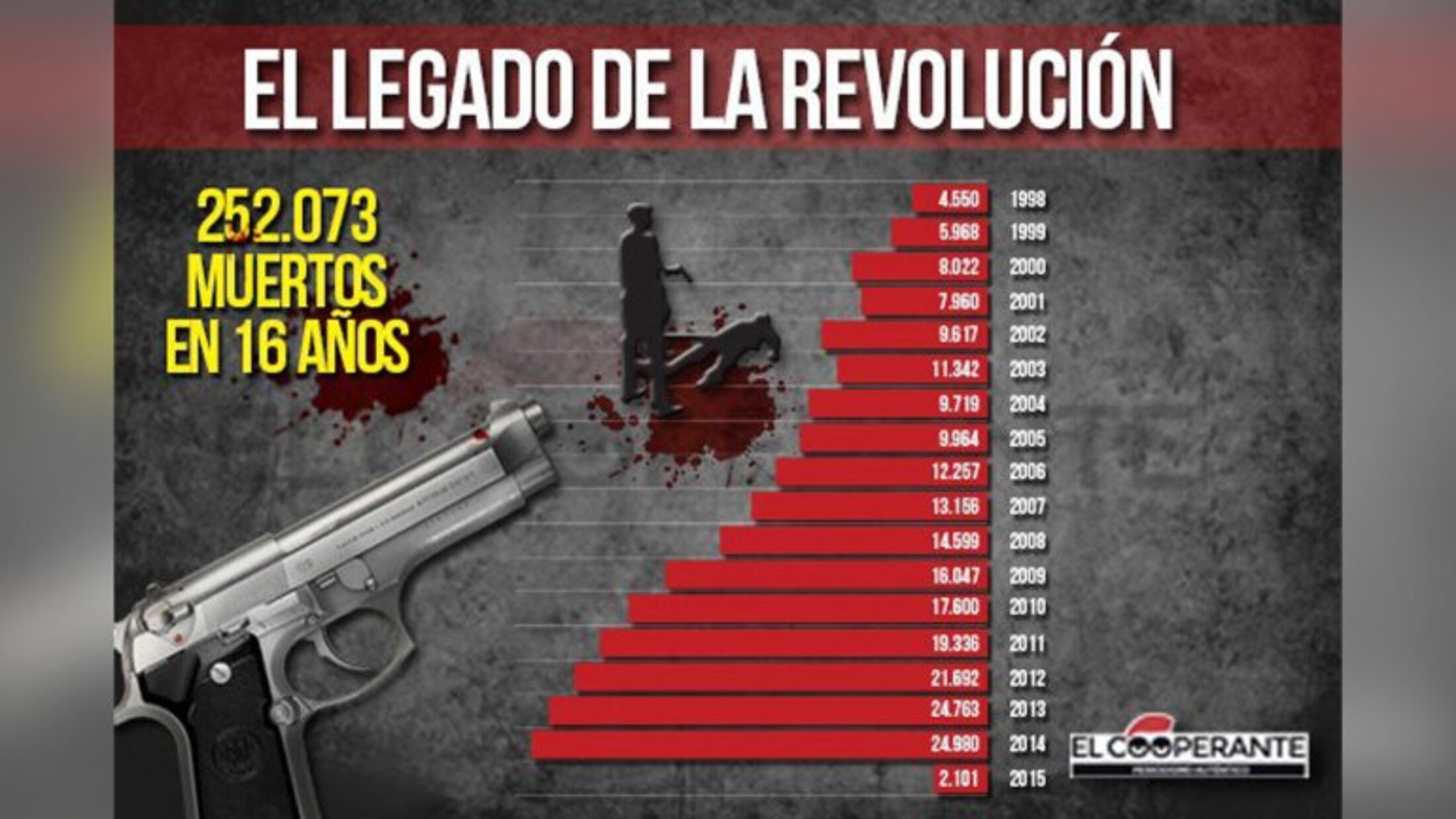 On trouve au Venezuela quelques-unes des villes les plus violentes au monde ; le taux national de meurtre s’élève à 58 pour 100 000 habitants, selon les chiffres officiels. Des groupes locaux, dont l’Observatoire vénézuélien de la violence, situent quant à eux ce chiffre à plus de 91 pour 100 000.