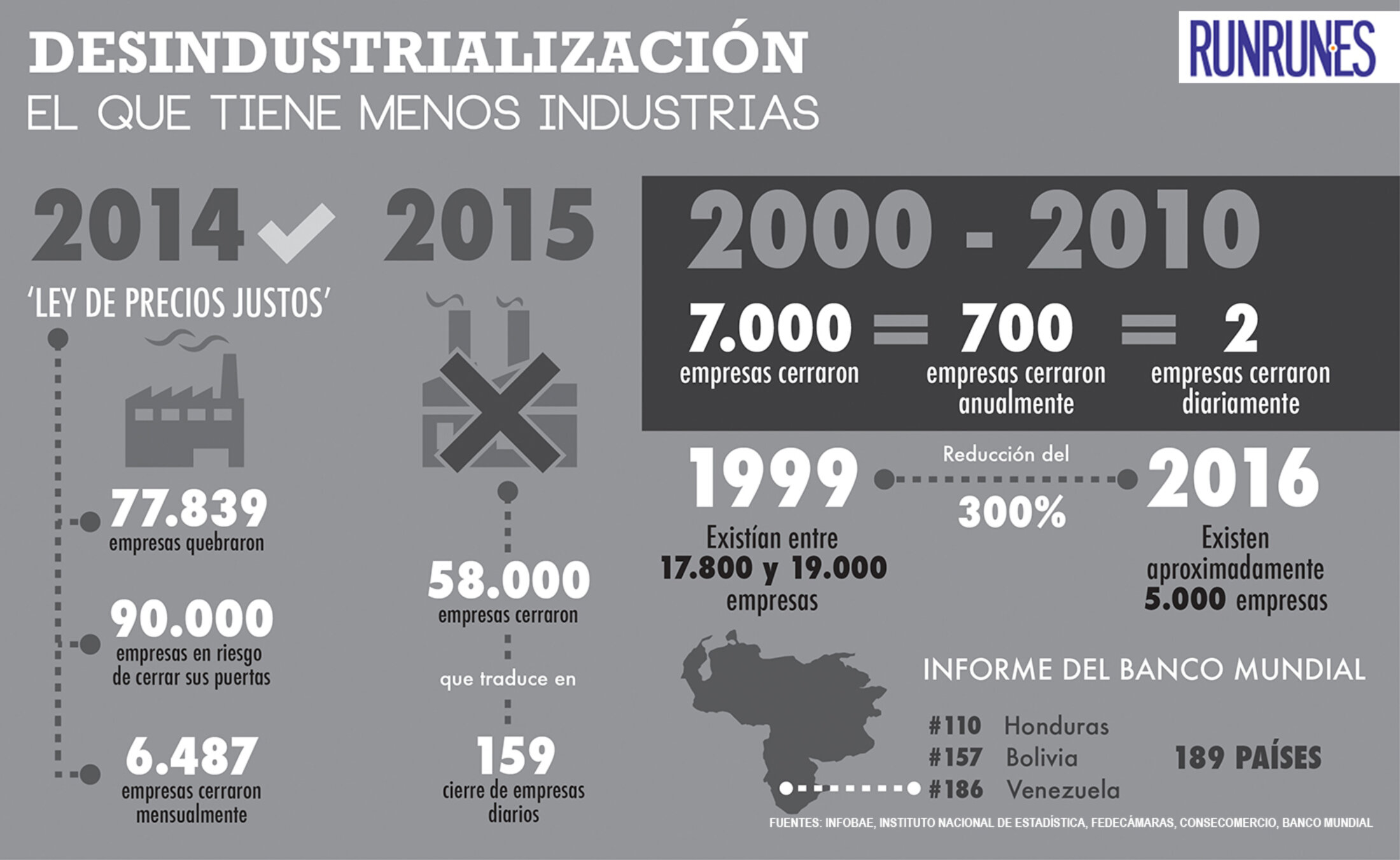 5 000, ce qui représente une diminution du 300% du parc industriel durant la période du chavisme, selon les chiffres officiels de Consecomercio.