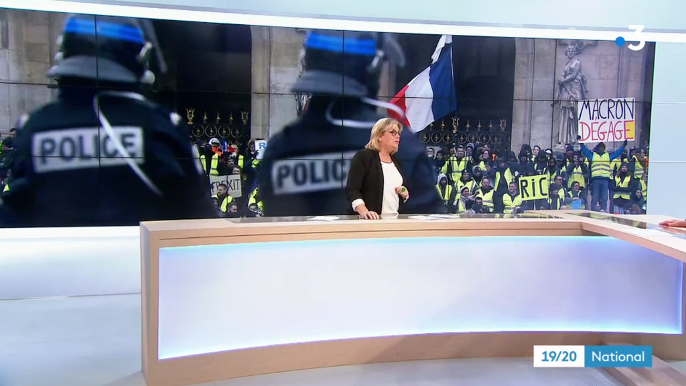 "Nous tenions à vous présenter nos excuses, hier dans le 19/20 une erreur humaine a conduit à la diffusion d'une photo tronquée, voici cette image derrière moi telle qu'elle a été prise par un photographe, nous vous devions cette explication au regard de la confiance que vous nous accordez"
