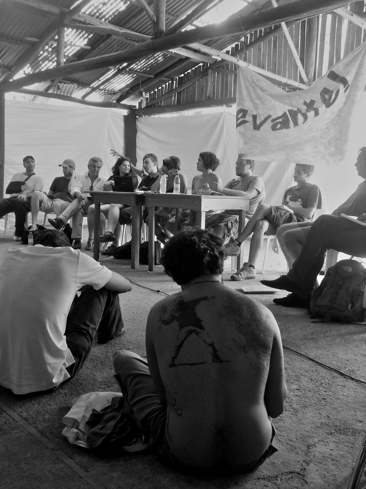 Réunion publique dans le camp de la jeunesse du FST de Porto Alegre avec des représentants de Occupy Wall Street, Occupy London, indignés grec, espagnols, des étudiants chiliens et brésiliens et des militants tunisiens.