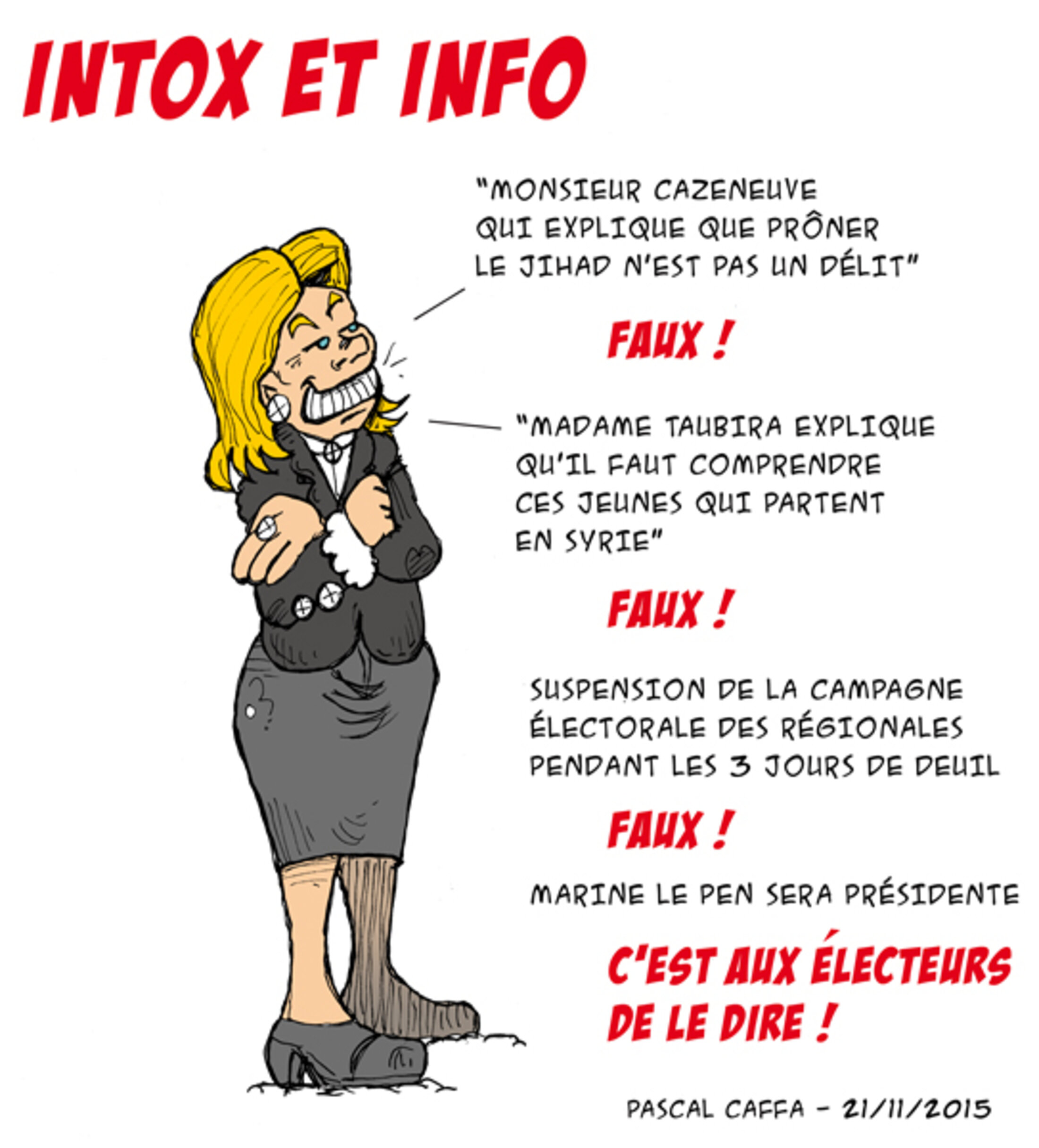 Bon, ok ce n'est pas un dessin drôle… mais un peu de pédagogie pour éviter d'être des pigeons … résistons ! Je vous ai mis plein d'hyperliens … puisque Madame Le Pen nous invite de vérifier ses propos ! Voilà, à nous autres qui ne voulons pas que l’inacceptable s'installe aux manettes du pouvoir de résister et d'éclairer les personnes qui ont la pensée paresseuse… faites passer ! Soyons de vrais français, soyons fiers de notre pays de liberté, soyons fiers de nous et refusons de ne plus nous sentir chez nous … patrie de liberté partagée, patrie de nos différences, patrie de notre force de solidarité ! Même si on gagne au loto, merde quoi ! Séance pédagogique sur le FN et la pratique du mensonge !
