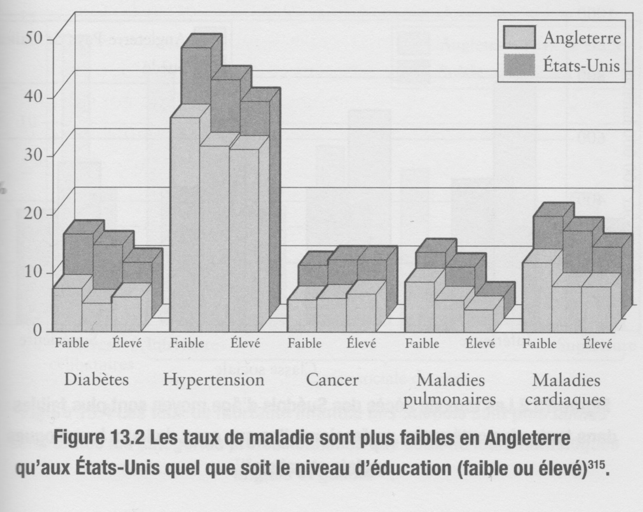 Ici l'exemple de l'incidence de la disparité de revenus entre deux états pourtant parmi les inégalitaires mais dont la variation d'inégalité fait varier les différences sanitaires dans toutes les classes sociales.