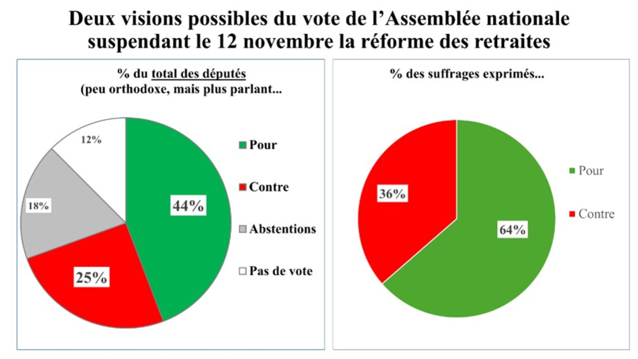 La suspension de la réforme des retraites avait enfin été votée le mercredi 12 novembre à l’Assemblée nationale ; plein de détail dans l’article suivant. On peut se contenter de notre résumé.