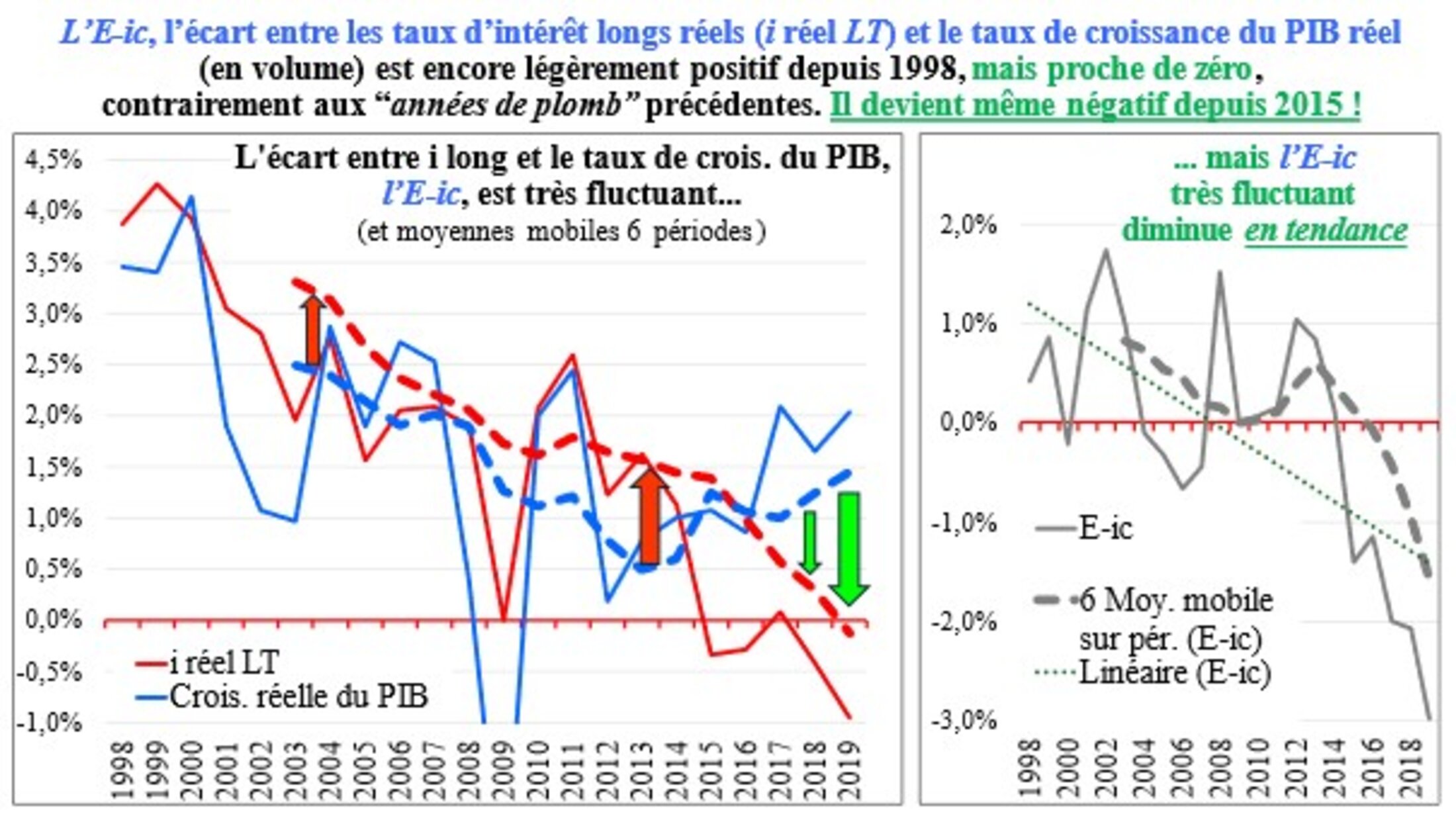 Je me permets de revenir sur cet E-ic, l’écart entre les taux d’intérêt réels « longs » (sur les prêts-emprunts à long terme) et le taux de croissance réel (en volume) du PIB, c’est-à-dire de la richesse réelle produite.