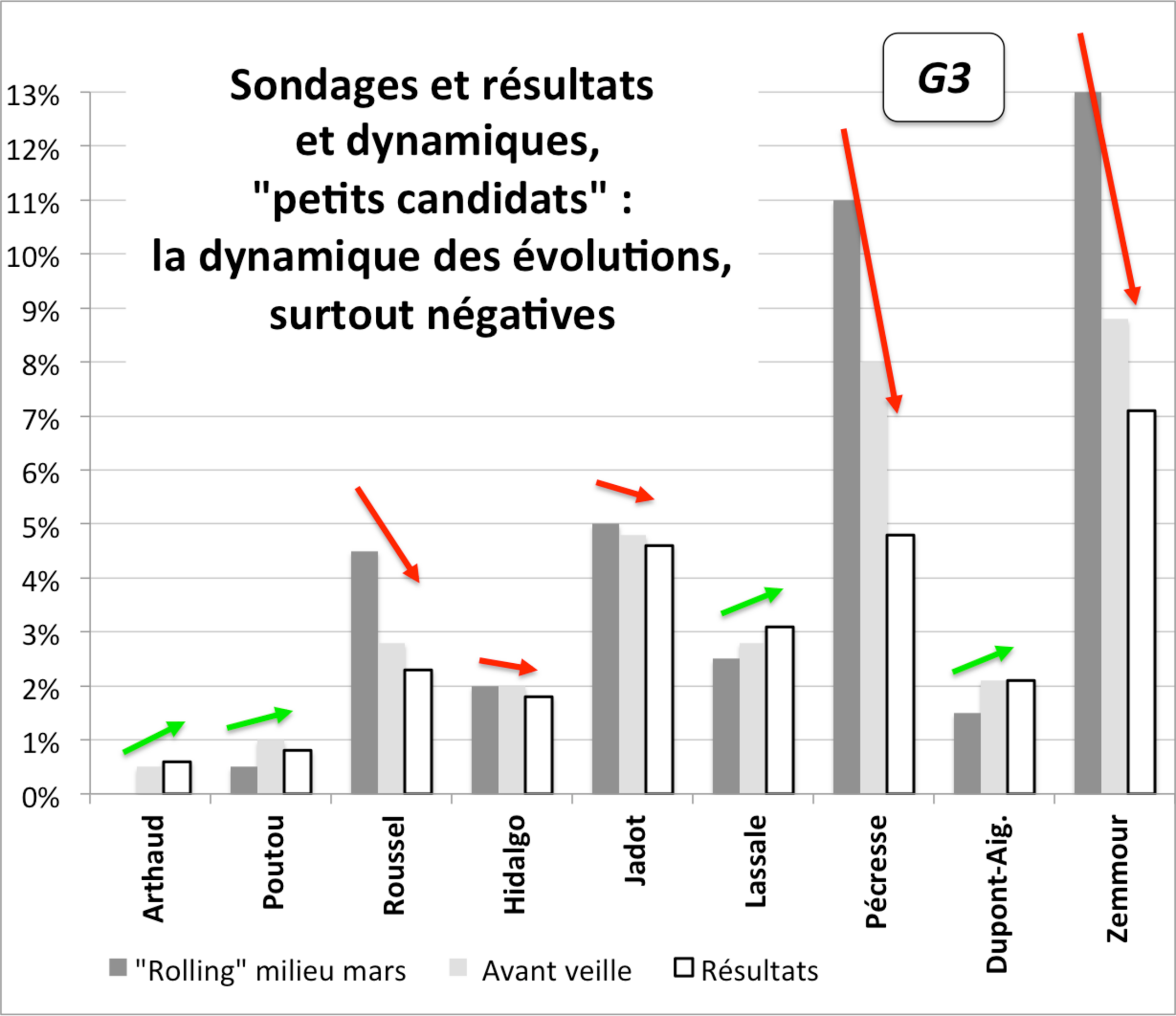 Les votes utiles (ou efficaces selon Mélenchon) n’ont pas été suffisants pour passer devant ceux de Marine Le Pen, gonflés donc par la fuite des électeurs de Zemmour dont la déroute, bien que moins marquée que celle de Pécresse, est évidente.