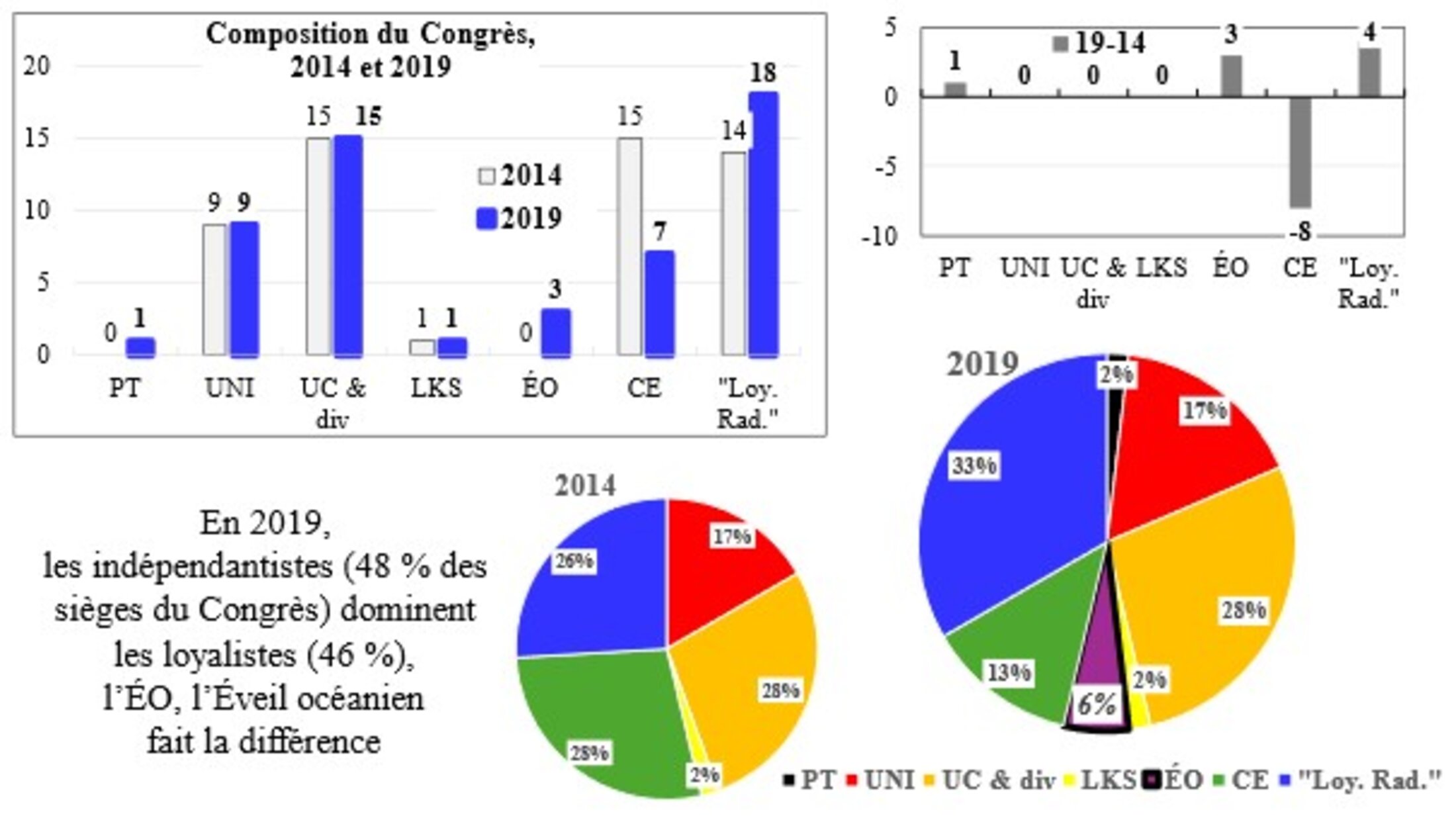 Un Haut-commissaire (dit, sur le Caillou, Haussaire) de la République, délégué du gouvernement en Nouvelle-Calédonie éclairait assez bien les luttes politiques de l’époque. Il dressait un portrait de l’échiquier politique suite aux élections provinciales de mai 2014 caractérisé par le « symptôme de l’éclatement […] avec trois groupes politiques au sein du bloc non indépendantiste ». En rajoutant les deux groupes au sein du bloc indépendantiste (UC et UNI-Palika) on n’observait plus deux blocs mais une structure « pentapolaire », en cinq blocs. Ce Hausaire notait la « recomposition des alliances » qui avait permis début 2015 la constitution du gouvernement Germain « qui pourrait aboutir, écrivait-il, à terme, à une recomposition du paysage politique, avec un éventuel dépassement du clivage entre indépendantistes et non-indépendantistes et la formation d’une “majorité de projet“ qui réfléchirait à l’avenir institutionnel du pays. Mais il est encore trop tôt pour le dire »[10].