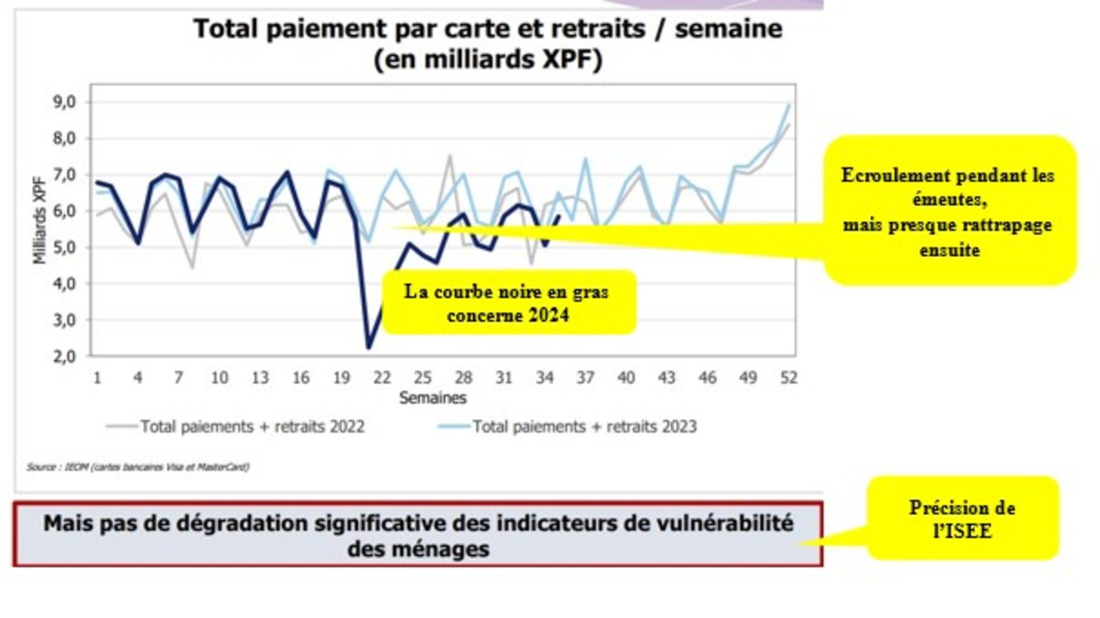 Les points sur les i sont ainsi mis : la baisse de l’emploi a précédé les émeutes du 13 mai (mais ce n’est évidemment pas leur explication !) : « Le nombre d’emplois salariés du secteur privé a diminué avant même que les évènements de mai n’éclatent. L’ISEE a constaté, en début d’année, une anomalie dans la "saisonnalité de l’emploi". […] "Un certain nombre de contrats prennent fin en décembre puis les gens sont réembauchés en début d'année. C’est un cycle classique que l’on observe depuis des années. Et là, en mars, l’emploi n’a pas réaugmenté. C’était déjà un premier signal", explique Véronique Ujicas, cheffe du service conjoncture et diffusion de l’ISEE ». Et l’article ajoute « Annoncer un taux de chômage est "abusif". […] Si le nombre de chômeurs du secteur privé est connu, l’ISEE insiste sur un point. Le taux de chômage est, à ce jour, incalculable. Pour cela une enquête approfondie sur les forces de travail doit être menée et seul l’ISEE en a les compétences. Pour 2024, la collecte est en cours. […] "Le taux de chômage actuel ne pourra être connu qu’en milieu d’année prochaine, lorsque l’enquête aura été terminée et les résultats traités et analysés", précise la responsable ».