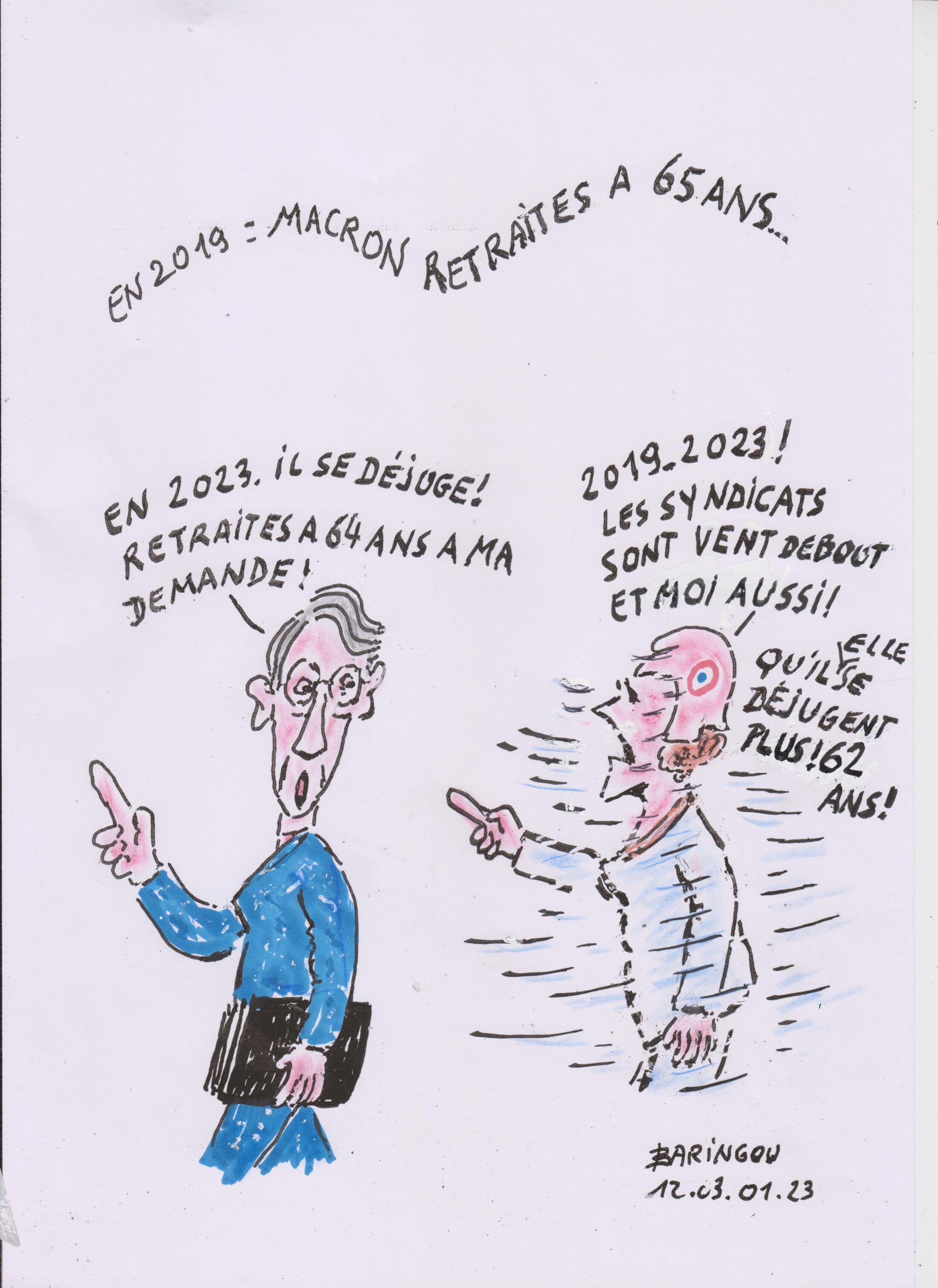 en 2019 ,Macron retraites 65 ans, en 2023 ...