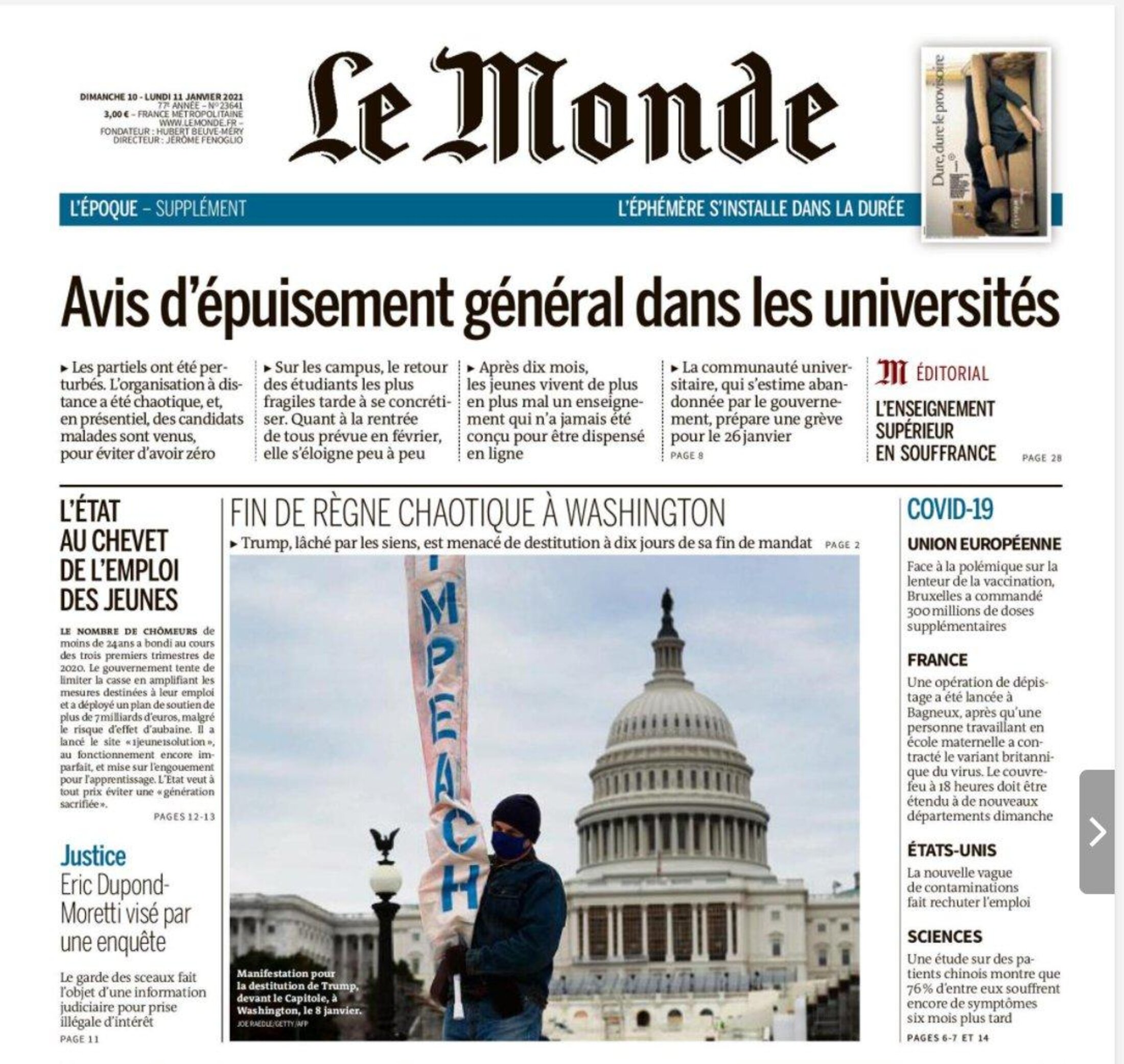 Rien. Pas un mot. Le technocrate de la Cour des comptes propulsé Premier ministre par la grâce d'un ancien Inspecteur général des Finances en remplacement d’un membre du Conseil d’Etat a, dans sa conférence de presse du 7 janvier 2021, passé en revue ceux des nombreux sujets relatifs à la diffusion du coronavirus en France qui lui paraissaient devoir retenir l’attention de son auditoire. L’enseignement supérieur n’en a pas fait partie. Il est vrai que celui-ci n’existe plus que virtuellement depuis que le gouvernement a décidé qu’afin de limiter nos interactions, la multiplication tous azimuts des lignes Maginot humaines et sociétales devait être la principale parade à cette propagation dans l’attente de la vaccination d’une partie significative des français, et que partant les étudiants ne devaient en principe plus être autorisés à accéder, sans qu'il soit besoin de procéder à une différenciation territoriale, à l'ensemble des campus de la République pour y suivre des enseignements en présentiel. Cette interdiction a été posée par le Premier ministre à l’article 34 du décret n° 2020-1310 du 29 octobre 2020 prescrivant les mesures générales pour faire face à l’épidémie de covid-19 dans le cadre de l’état d’urgence sanitaire.