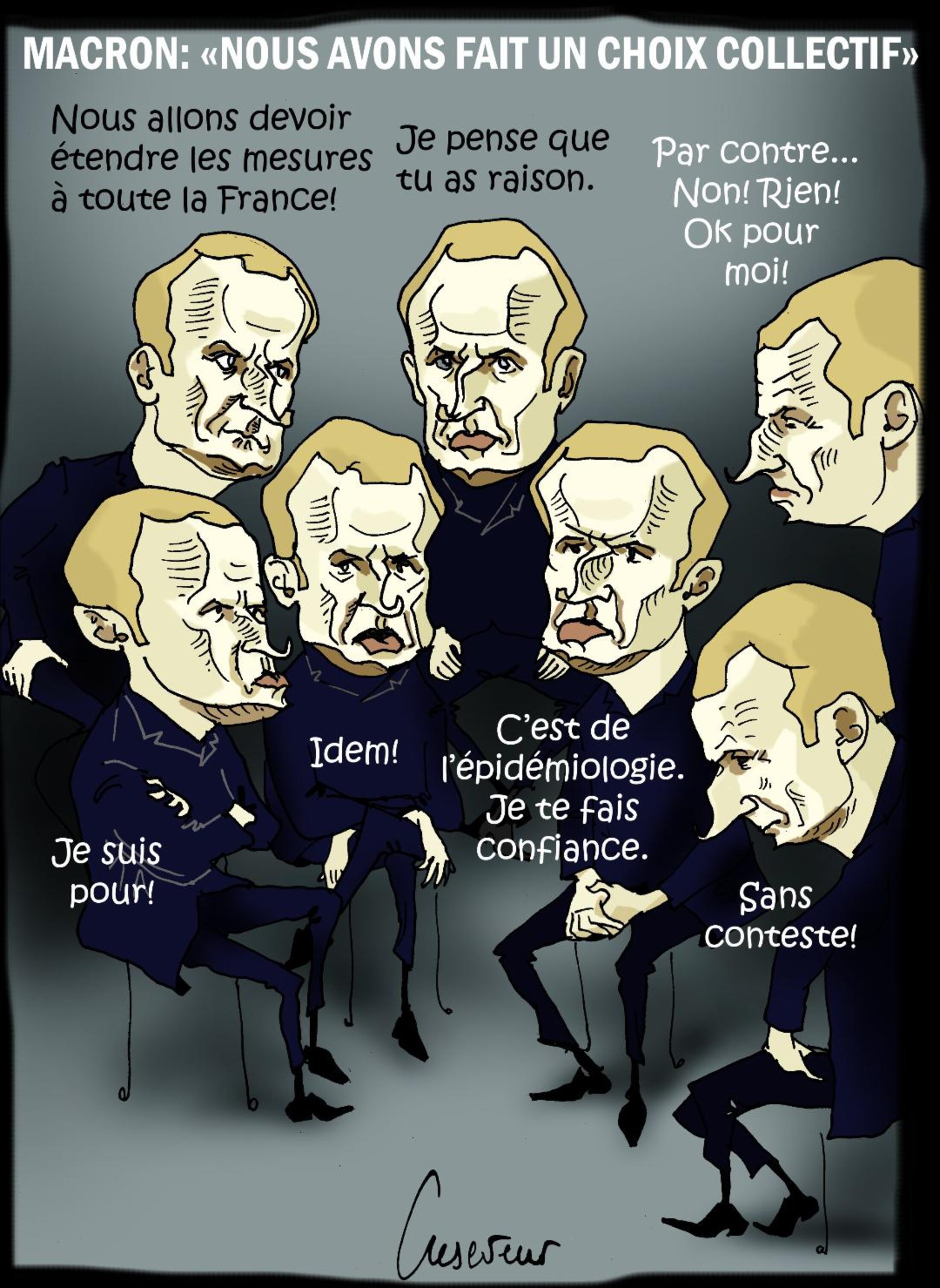 Déjà, le pronom « nous » employé par M. Macron a été mal orthographié par la version écrite mise en ligne sur le site internet de l’Elysée, car il y manque la majuscule : ce « Nous » est l’équivalent du pluriel de majesté d’Ancien Régime, chacun ayant bien compris que le président de la République décidait absolument seul de la politique sanitaire de la France ainsi que de la date des scrutins électoraux locaux.