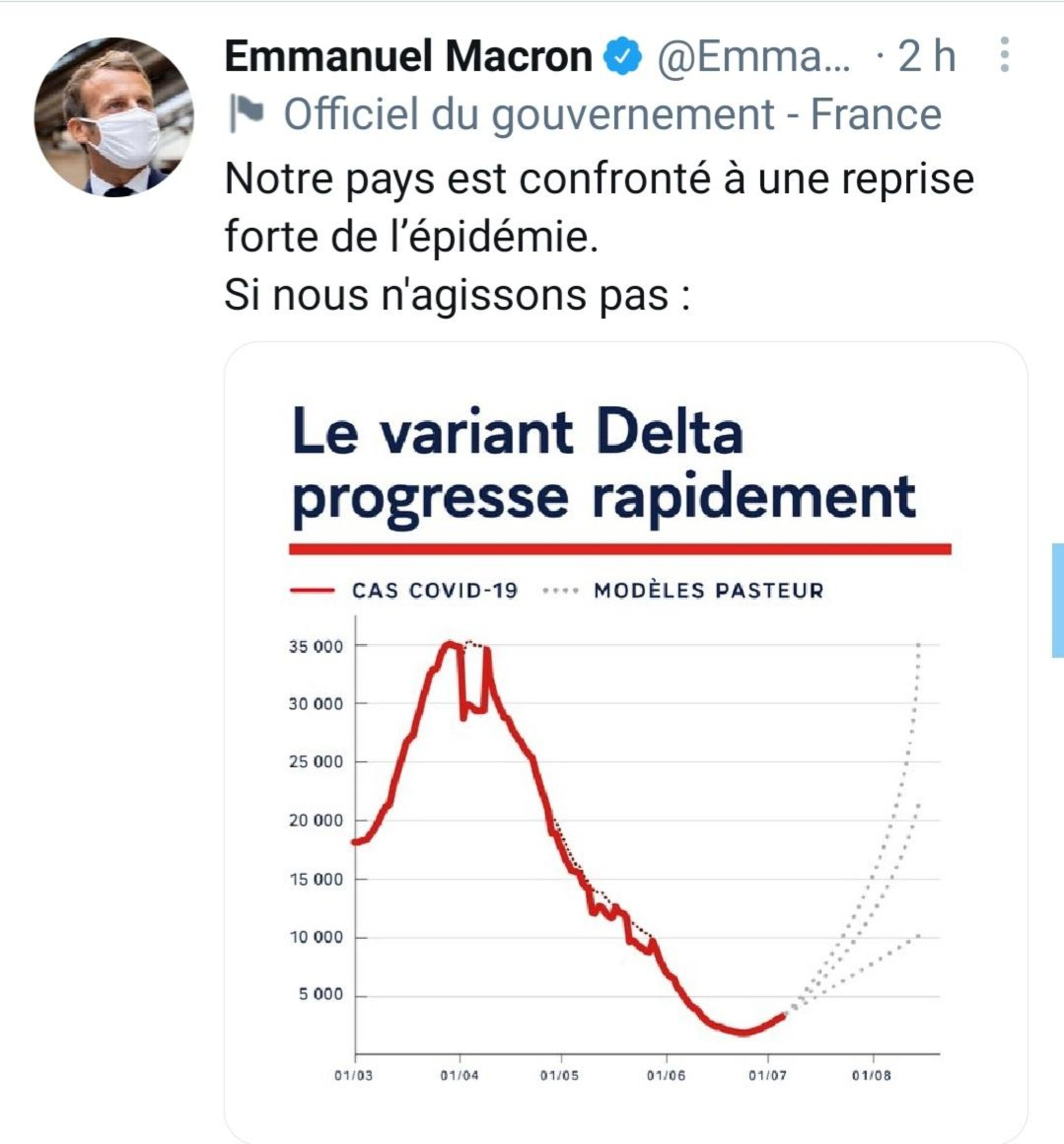 Mais la loi du 31 mai 2021 n’était que la première dose collective du passe sanitaire. Ici encore comme il était prévisible (Un passe sanitaire, 18 mai 2021) et une fois de plus sur la base d’une modélisation sanitaire hasardeuse et putative, le président de la République a annoncé dans son allocution du 12 juillet 2021 que deux autres doses nous seraient infligées de gré ou de force, alors pourtant que la situation sanitaire est bonne en métropole sinon en voie d’amélioration constante en dépit du ton alarmiste utilisé par le locataire de l’Elysée (« A l’heure où je vous parle, notre pays est confronté à une reprise de l’épidémie sur tout le territoire ») : au 12 juillet, le taux de positivité des tests n’est que de 1,2% (ce qui signifie que 98,8% des tests effectués sont négatifs !), le taux d’incidence est de 38 pour 100 000 personnes, 28 personnes étaient décédées du covid-19 et les services de réanimation sont très largement désengorgés. De l'éventuelle 'quatrième vague', on n'aperçoit aujourd'hui que l'écume...
