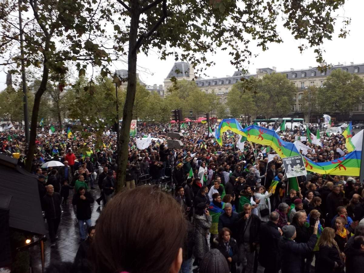 Dans les quelques images qui suivent, la plus grande différence avec celles d’Alger est la présence de nombreux drapeaux amazigh (2), interdits par les autorités algériennes.