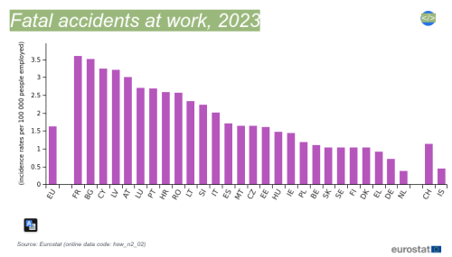 Plus de deux personnes, en moyenne, meurent chaque jour en France, par accident du travail ! En 2024, 764 personnes dont 22 de moins de 25 ans. Et, avec les maladies professionnelles, 1297 décès par an liés au travail : soit 3,55 par jour (Libération 01/12/25).