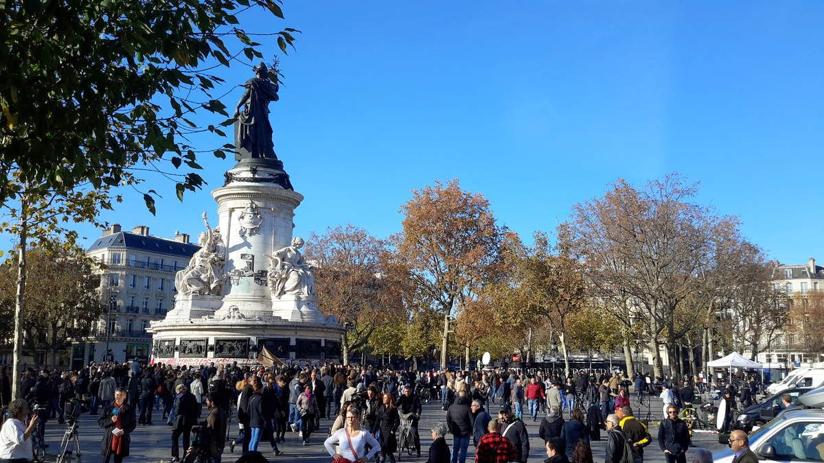 Quelques images recueillies, essentiellement place de la République, ont été regroupées ici pour l'intérêt de l'image (pas toujours de bonne qualité), du texte…