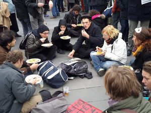 Cependant, la place de la République a aussi été occupée par des groupes qui refusaient de se plier à l’interdiction de la manifestation et des personnes qui allaient ou revenaient de la "chaîne" ou qui venaient comme chaque jour rendre hommage aux victimes des incidents..