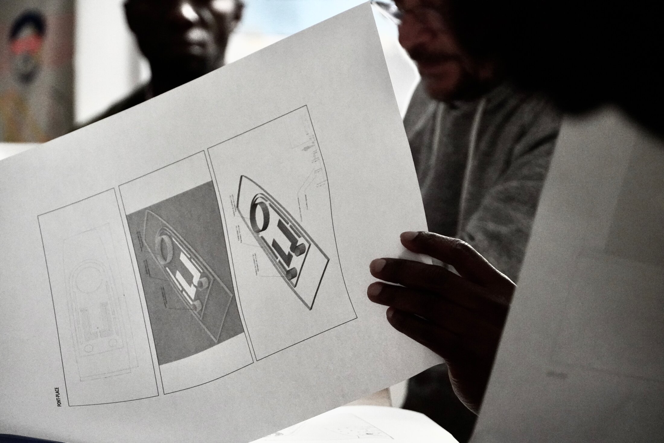 Les doigts suivent le tracé du dessin que décrit Marc Van Peteghem, architecte naval en charge du projet avec son équipe de VPLP et le designer Marc Ferrand. L'assemblée respire comme une petite école, l'attention est vive. Une main se lève parfois pour demander une précision, ou un éclaircissement linguistique : nous parlons anglais, et traduisons en français pour quelques francophones. Par le chemin des représentations (plans, coupe, élévations), nous arpentons ensemble les ponts du catamaran de 69 mètres de long et de 22,50 de large, essayons d'appréhender les volumes, les matières, les perspectives, la manière dont vivre peut être possible de nouveau.
