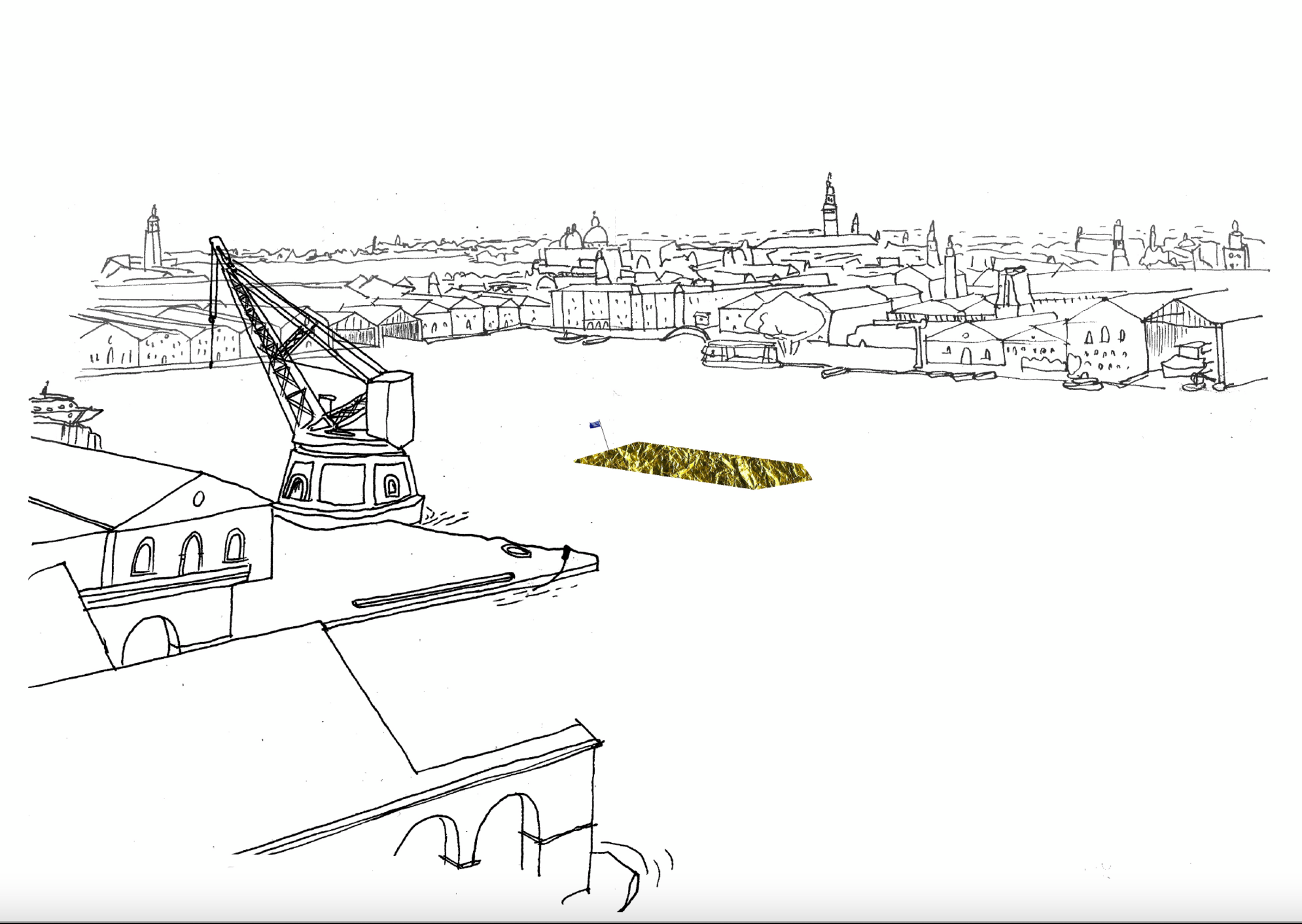 C’est une longue lettre que je vous écris dans l’espoir d’entamer avec vous un dialogue sur la manière dont pourrait apparaître le Navire Avenir en 2024 à Venise, sous une forme que nous avons encore à peine esquissée. Lumineuse, nous l’envisageons d’abord comme une vibration sur l’horizon du bassin de l’Arsenal : l’emprise à échelle 1 du pont principal du navire déployée sur l’horizon, recouvert de couvertures de survie, visible précisément du quai où se dressait Barca Nostraainsi que de la tour de l’Arsenal offrant une vue sur le lointain. Européenne, nous l’envisageons comme une pièce adressée à la représentation politique du continent, comme l’amorce d’une représentation de l’Europe au sein de la Biennale, comme la surface flottante qui pourrait devenir dans les années à venir le « Pavillon de l’Europe », comme le support effectif d’un pavillon européen de 250 cm sur 150 cm, drapeau que d’ici là nous aurons brodé avec de nombreux rescapés en France et en Italie et qui sera effectivement installé sur la poupe du Navire Avenir. Manifeste, nous l’envisageons comme une pièce à laquelle renvoient, présents sur le quai ou dans la tour de l’Arsenal, la maquette définitive, les plans de structures et des pièces nécessaires, ainsi que l’ensemble du dossier ICH-01 finalisé, le tout étant à transmettre à la directrice générale de l’UNESCO à la clôture de la Biennale. Toujours à venir, c’est une pièce dont la réalisation à échelle 1 sera à ce moment là devenue inarrêtable, tout comme le déploiement du travail pour qu’advienne une flotte, enfin, grâce à la levée de fonds que nous aurons alors finalisée et dont nous dévoilerons les contributeurs au moment précis de l’inauguration.