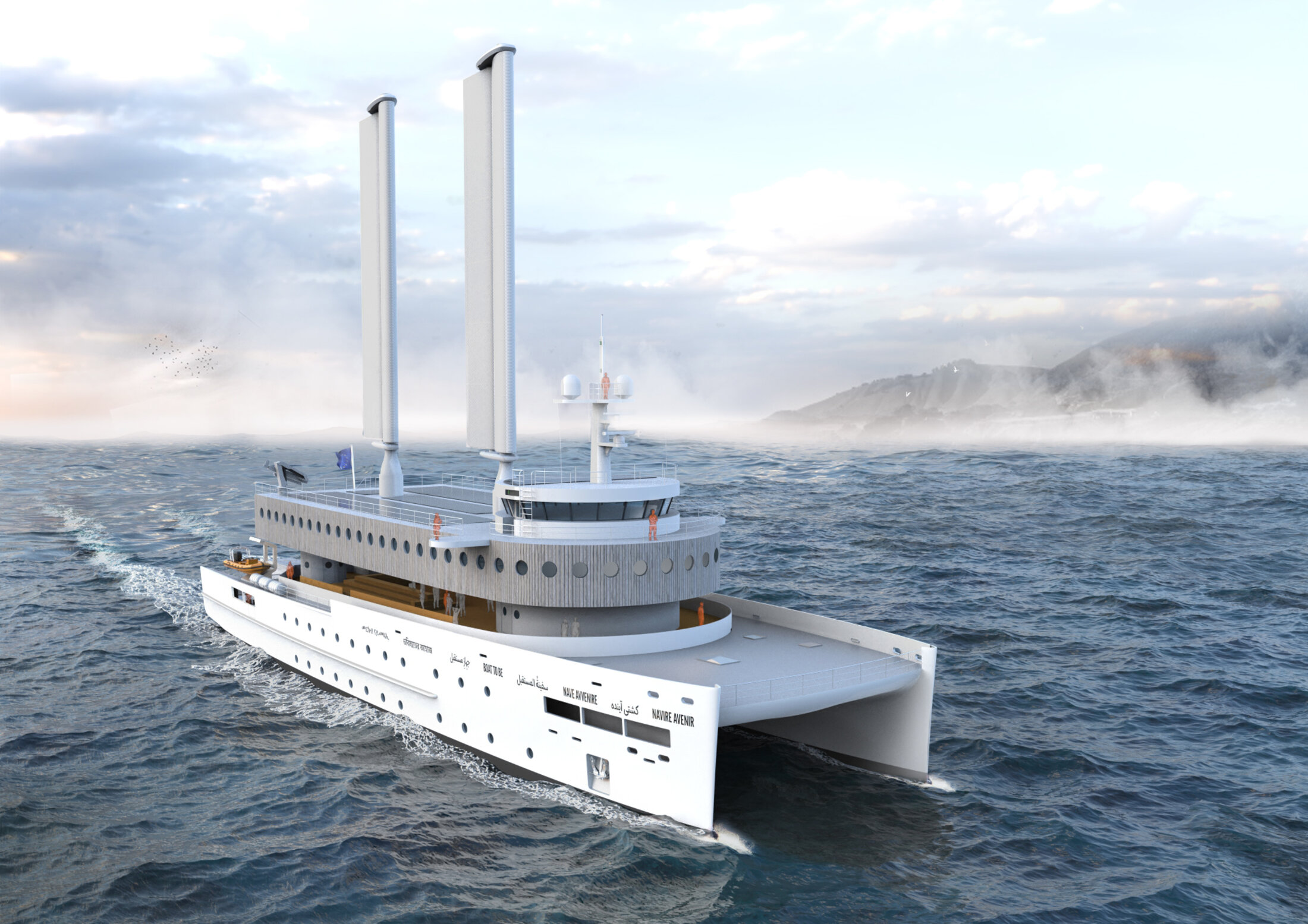 Le Navire Avenir est un catamaran de 69 mètres de long sur 23 mètres de large dont nous finalisons ces prochains mois la conception, celle-ci comprenant le dessin de la structure architecturale, de toutes les pièces indispensables pour la vie à bord, mais aussi des éléments en droit, en discours, en représentations permettant d’envisager sa réalisation effective. Nous travaillons aujourd’hui à réunir les financements qu’exige un tel projet et entamons dans les prochaines semaines une levée de fonds citoyenne tout en sollicitant des partenaires, privés comme publics, afin de lancer le chantier naval au plus tôt, considérant qu’il faut compter un an et demi au moins pour la construction d’un tel bâtiment.
