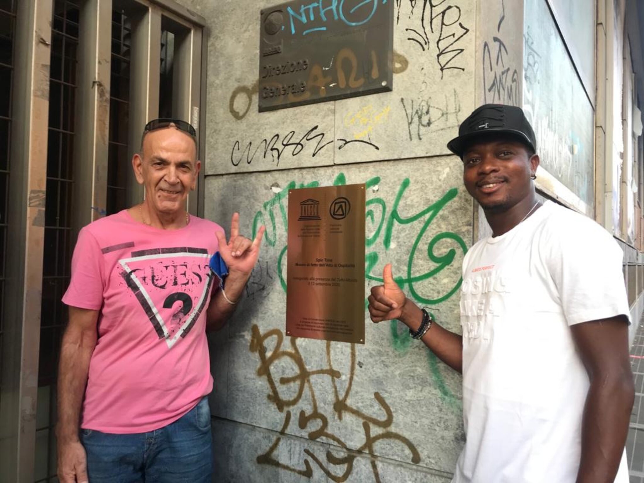 Ma résidence italienne devient atelier collectif : avec des artistes, des militants, des réfugiés de Rome, nous travaillons la dimension photographique de cette instruction. Nous y recueillons d’Europe entière des images témoignant des gestes contemporains de l’hospitalité vive, en débattons et constituons une première sélection en vue de porter enfin dix de ces images à l’UNESCO. Avec certaines de ces représentations d’une Europe active et solidaire, que nous reproduisons en grand format noir et blanc, nous traversons Rome jusqu’à Spin Time, le plus grand squat de la ville. Ici, nous installons les images et invitons les autorités culturelles à inaugurer cette exposition manifeste. Ici, nous scellons une plaque, frappée du sceau de l’UNESCO, annonçant que l’acte d’hospitalité est bientôt un patrimoine mondial, et que ces lieux en sont un musée vivant. Ainsi expérimentons-nous l’art et la manière de déployer dans le monde une part de cette instruction et, sur le chemin qui nous conduit à l’UNESCO, des stratégies d’intervention visant à protéger effectivement les gestes auxquels nous tenons, en l’occurence ceux qui font de Spin Time un refuge d’une extraordinaire beauté.