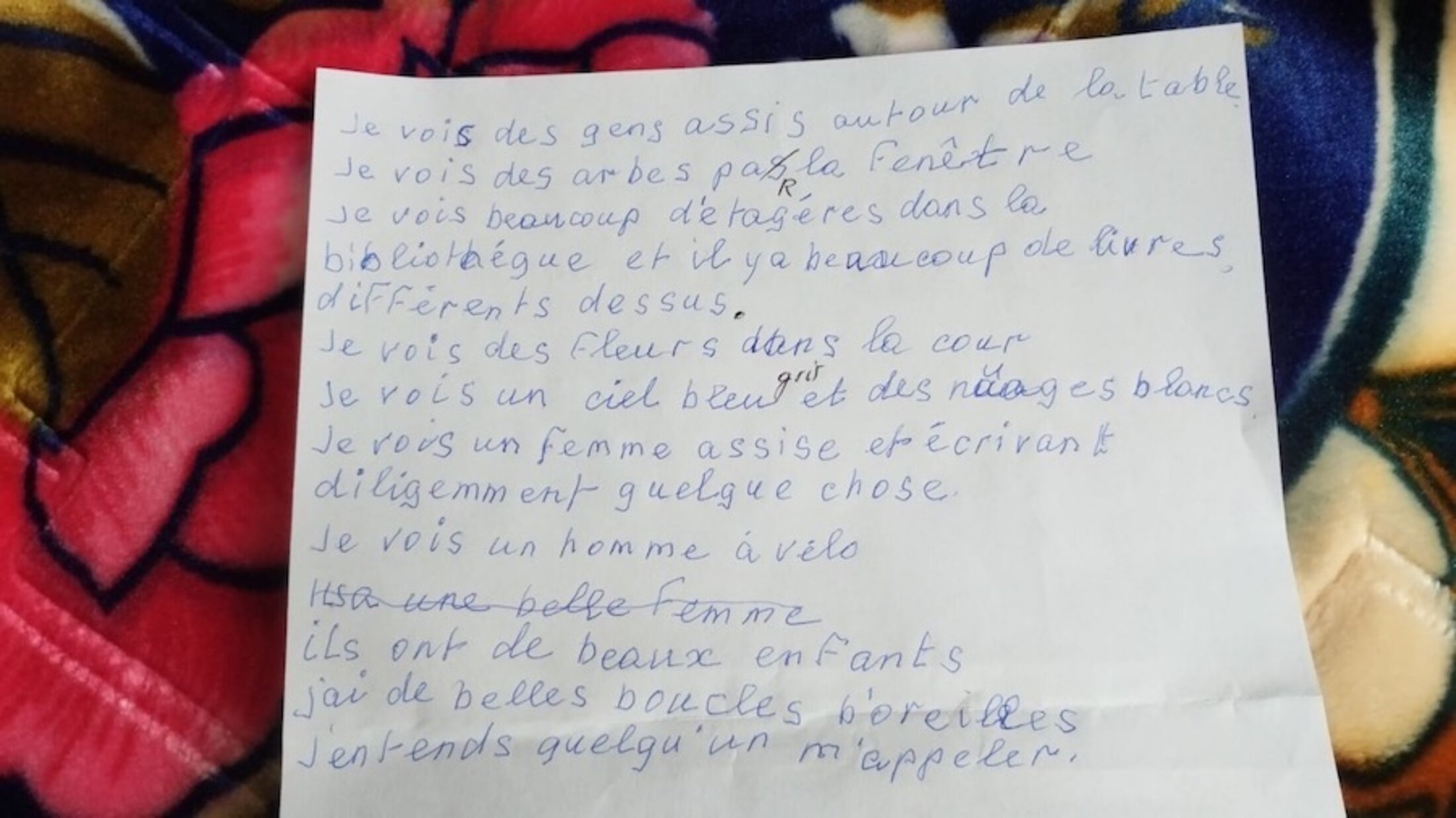 C’est en tout cas un jour spécial pour Miléna, un jour sombre et pourtant il faut rester debout, être là malgré tout, faire bonne figure. Elle était arrivée essoufflée à la bibliothèque, accompagnée de Zalina, pour nous rejoindre et ne pas manquer ce rendez-vous hebdomadaire. On s’accroche, on ne lâche rien, tout en faisant au mieux. Elle s’était excusée pour le retard, avait sorti avec précipitation son cahier, repris son souffle, trouvé une place entre deux, puis elle avait écrit avec les autres participantes, écrivaine de fortune, concentrée, avec application, ne laissant rien paraître.