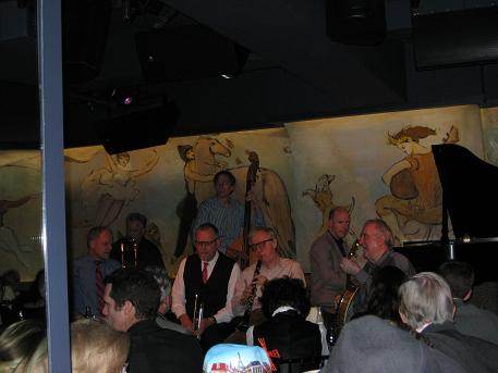 C’est en pensant à tout cela que je me suis rendu le 30 mars 2009 dans le bar de l’hôtel The Carlyle, dans le fort huppé Upper East Side de Manhattan à New York City. Woody Allen y joue de la clarinette avec The Eddy Davis New Orleans Jazz Band tous les lundis soir entre début janvier et début juin depuis de nombreuses années (http://www.thecarlyle.com/entertainment.cfm). Arrivée à 18h pour un show ne commençant qu’à 20h45 : il y a huit places au bar non réservables à l’avance, qui limitent les frais du projet (on peut tenir avec une ou deux bières sans avoir besoin de dîner, à la différence des tables de la petite salle).