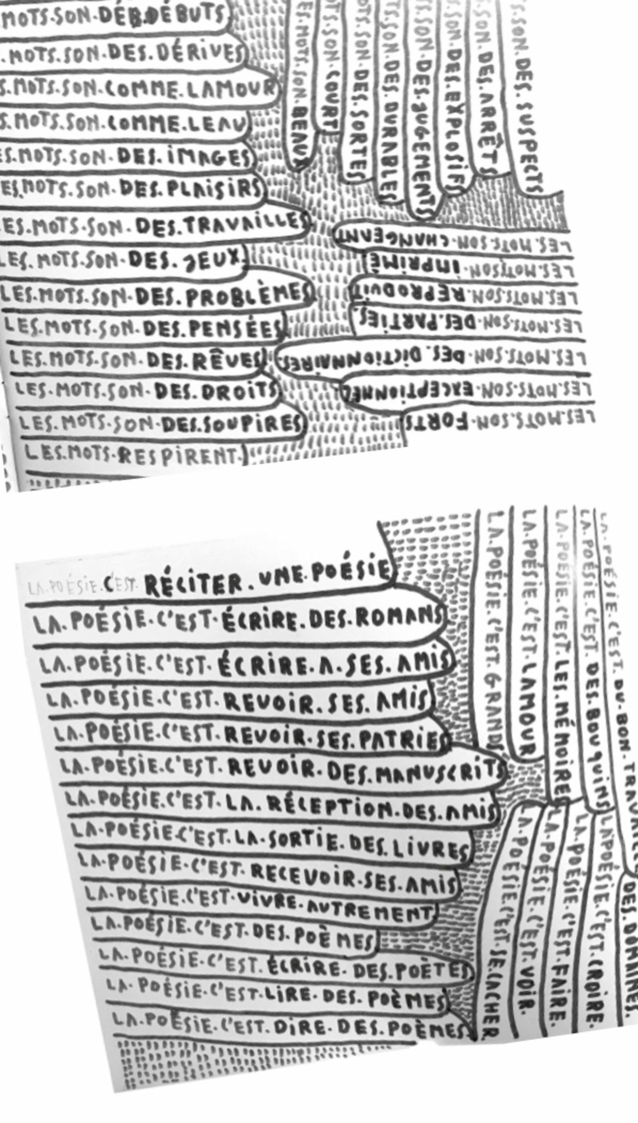 C’est pour cela que la lecture de ces textes, pourtant issus de la douleur et de l’abandon asilaire, procure ce « plaisir du texte » dont parlait Barthes. Car les créations langagières de ces personnes dites malades, sont libératrices et donc festives, elles ne relèvent pas de la seule douleur, mais d’une puissance de guérison dont l’art a parfois le secret.