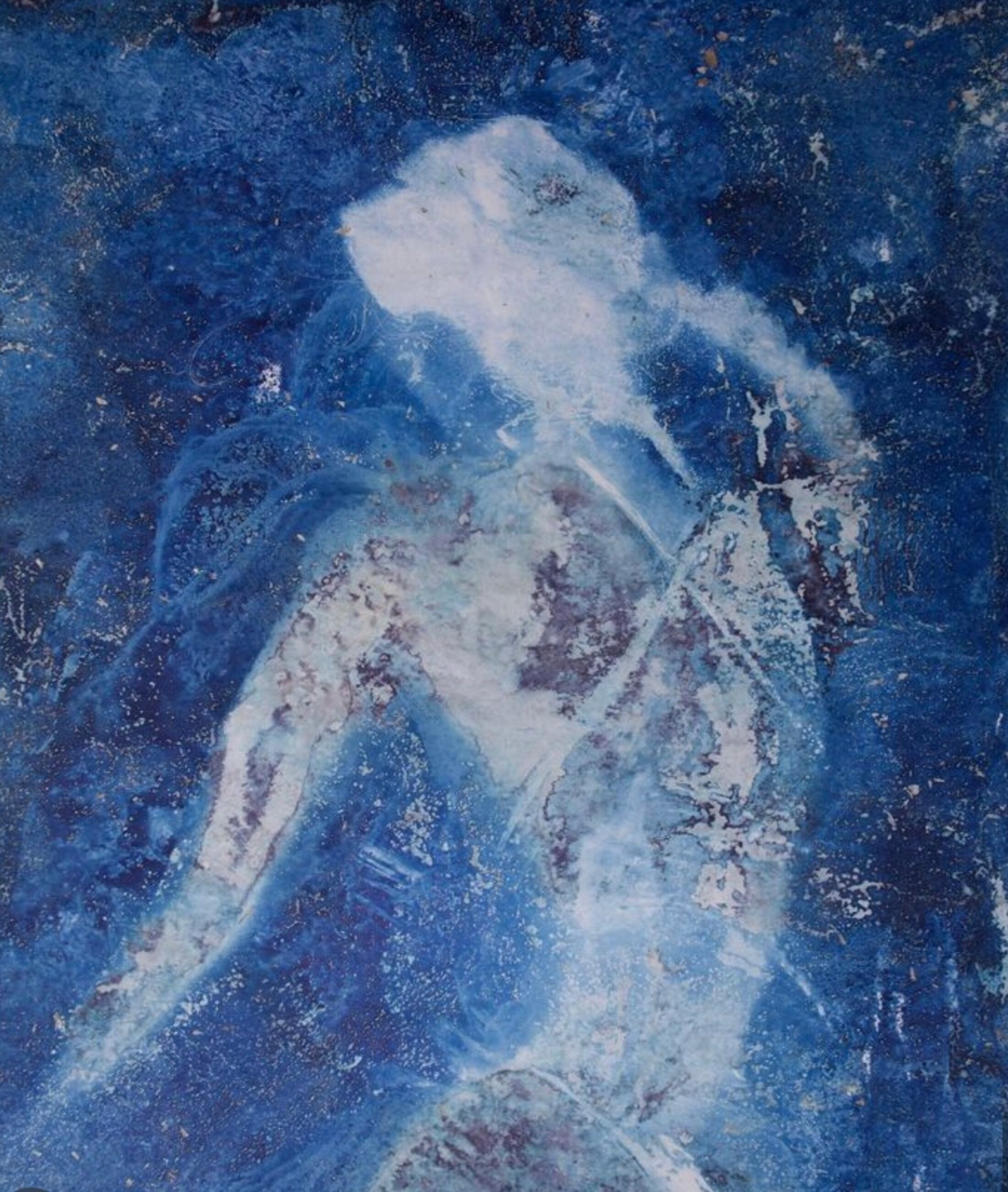 De fait, pour obtenir ses images insolites, ne recourt-elle pas aux matières les moins orthodoxes (eaux de la mer, embruns salés, sablés, soleil, peaux mouillées ...) et à des protocoles improbables (flottaison, exposition à la lumière extérieure...) transgressant les règles obligées de la photographie, fût-elle du cyanotype ?