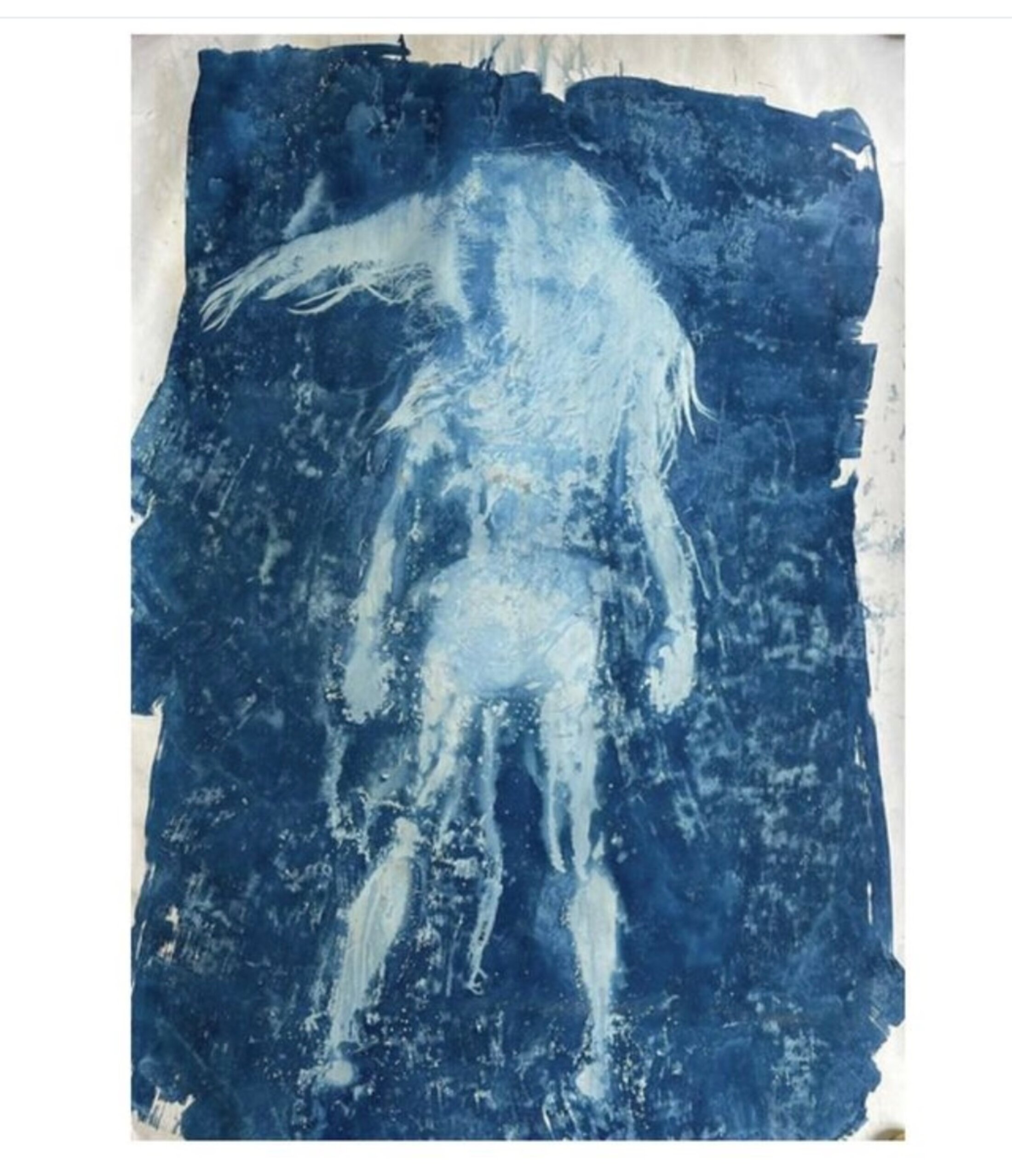 Pour réaliser son désir, l’artiste va se servir du cyanotype, une technique datant de la moitié du 19ème siècle. Ce procédé monochrome négatif permet d’obtenir un tirage bleu de Prusse, bleu cyan, des motifs de n'importe quel type d'objet ou de corps que l’on choisit d’immortaliser. Ceux-ci finissent par apparaître en clair sur un fond bleuté, en produisant une image par empreinte.