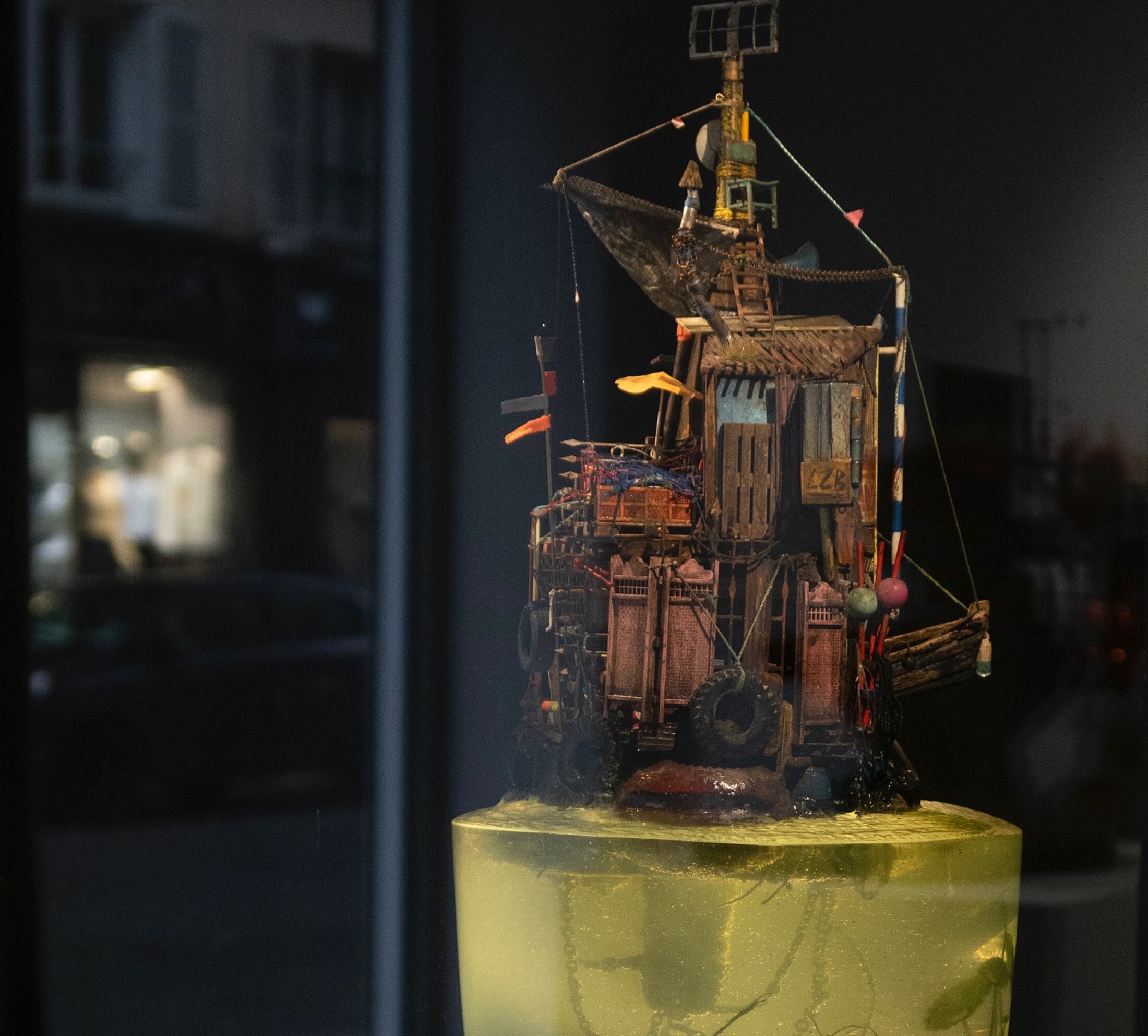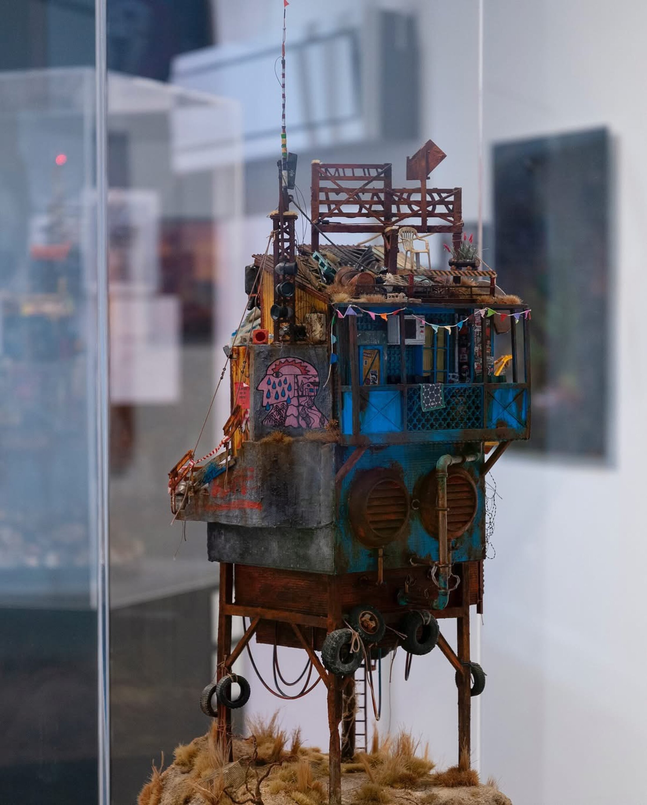 En offrant un véritable manifeste de savoir-vivre esthétique dans les ruines du capitalisme, l’artiste ne souscrit donc nullement au nihilisme collapsologique de certains. Son univers plastique n’a d’ailleurs rien d’une dystopie angoissante et sombre, mais témoigne plutôt d’un acte de résistance qui en appelle à la poésie du jeu, et aux vertus du merveilleux. De ce point de vue, le parti pris de la miniature, loin de signifier une clôture aux allures de repli résigné, semble plutôt constituer la voie royale à une régénération de nos imaginaires en voie d’extinction.