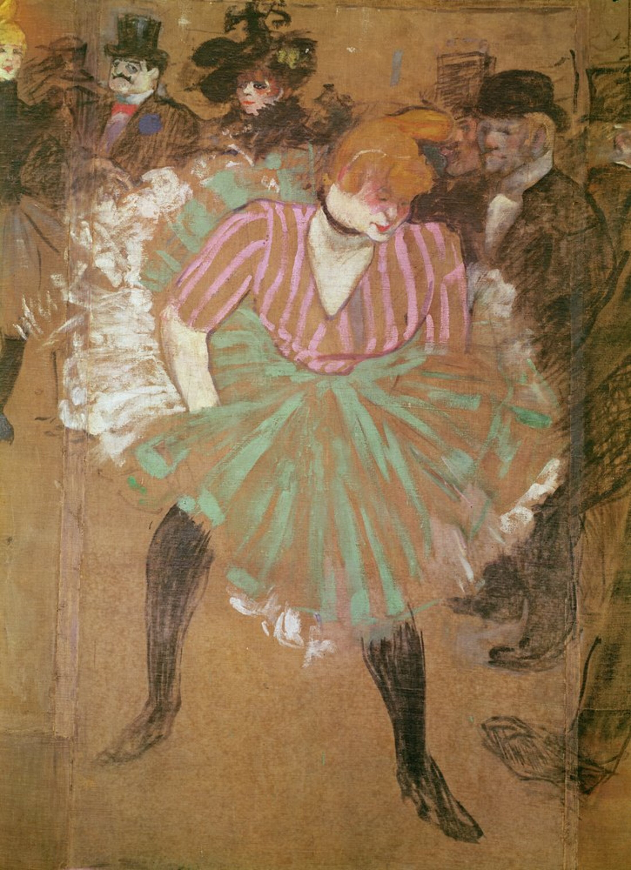 Envol et chute, triomphe et déchéance, gloire et immolation, agilité et ataxie : à l’instar du destin des figures « clownesques » qui envahissent les œuvres des artistes à la fin du XIXème siècle, la vie de La Goulue oscille entre ces extrêmes. Celle qui connaît la gloire au Moulin Rouge et inaugure comme première vedette la scène de l’Olympia à la fin du 19ème siècle est l’une des premières stars de l’histoire de la culture populaire. Née le 12 juillet 1866 à Clichy dans un décor digne de Dickens, elle est abandonnée par sa mère à l’âge de 3 ans. Son père amputé des jambes finira par mourir de ses blessures de guerre en 1873. Danser devient vite pour la jeune Louise Weber l’expression d’une soif d’émancipation insatiable. À l’instar de La Fanfarlo de Baudelaire pour qui la danse « est la poésie avec les bras et les jambes », elle ne connaîtra d’autre langage que celui de ses pas, et restera la femme enfant qui ne parlera qu’avec ses jambes. Mais à la différence des mouvements rêvés par le poète des Fleurs du mal permettant à la femme de s’évader de la matière, La Goulue incarne la danse dans la matérialité la plus crue ; celle de la chair offerte à tous les péchés. Elle s’y complait, s’y roule, et s’y vautre avec un plaisir vorace entraînant son public, « son semblable ». Elle incarne cette femme dont Baudelaire dans Mon cœur mis à nu exècre le portrait. La figure inversée du dandy !