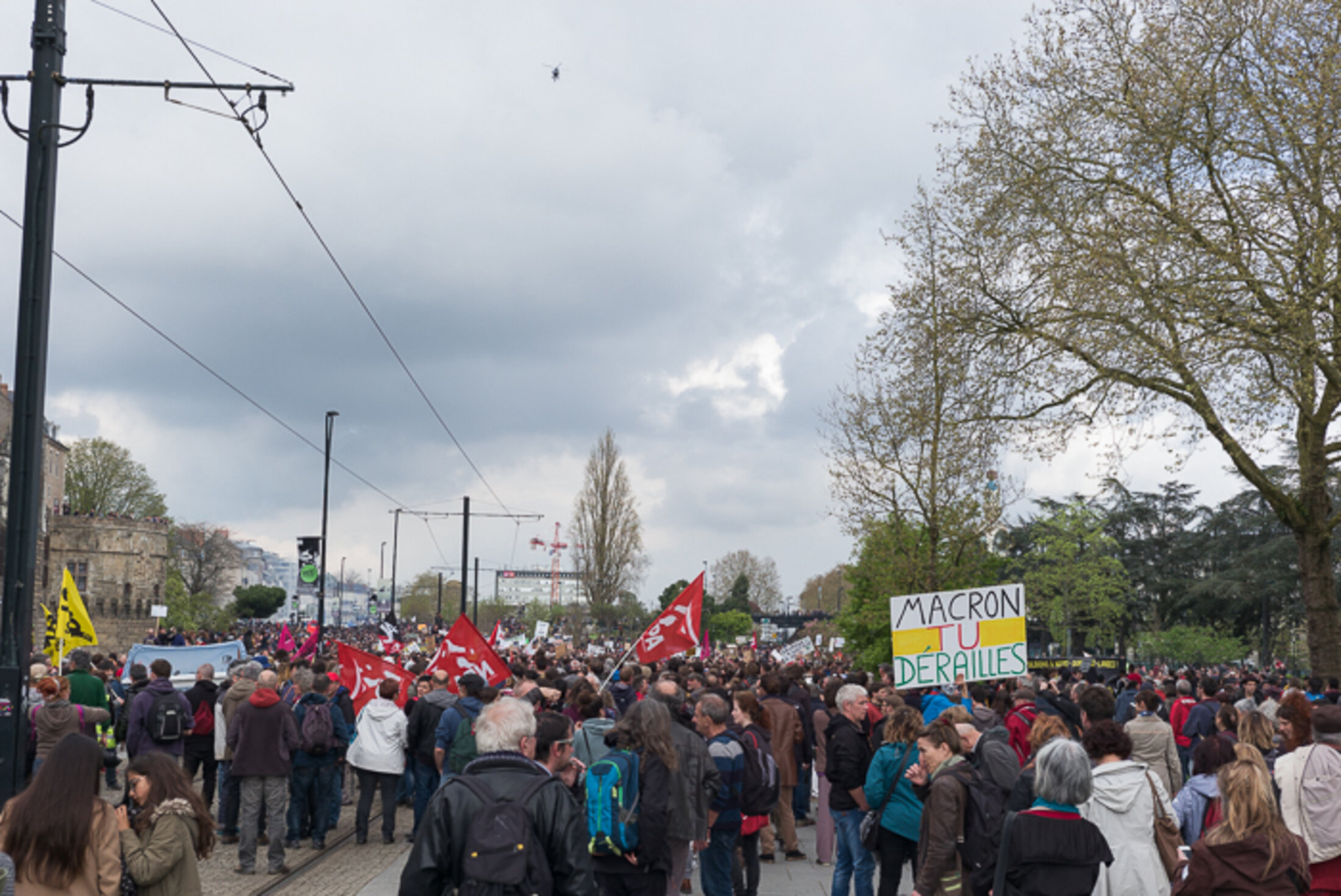 De nombreux-ses collègues hésitent ou ne viennent plus manifester de peur des lacrymos envoyés massivement sur des manifestants pacifistes. La quasi omniprésence d'un hélicoptère de la gendarmerie contribue à entretenir une ambiance de tension. Comme si il s'agissait de dissuader les gens de manifester, avec des blocages, des nasses. Comme un nouveau voyage à Nantes où on ne suivrait pas une ligne verte mais une ligne bleue.