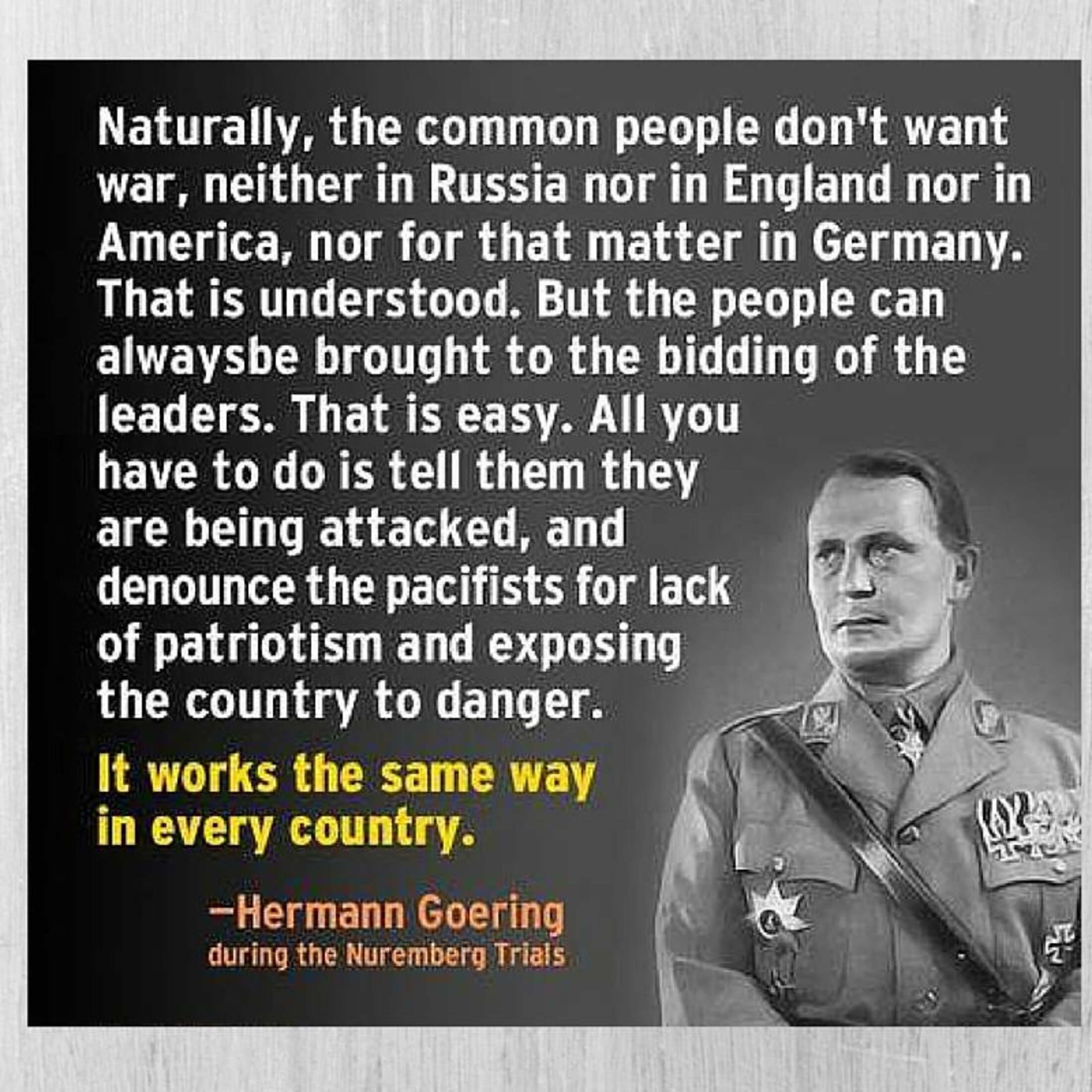 Non, l’argent n’est pas une fin en soi. Les vieilles politiques impérialistes ont fait leur temps, et si vous deviez me faire mentir, alors vous plongerez notre espèce dans la faillite. Bien sûr, vous survivrez à notre destruction, et vos fils avec vous. Mais vous aurez la satisfaction bien maigre de ne pas avoir dépassé le stade de l’enfant égoïste et capricieux qui veut un bonbon, et se fiche de savoir ce que devient le reste du monde. De tous temps les grandes luttes triomphantes ont été portées aux nues. Droits de l'Homme, recul de la peine de mort, droits de vote, émancipation (partielle et conditionnée) de la femme, encyclopédisme, séparation de l'Église et de l'État, abolition de l'esclavage, des privilèges, chute du nazisme, libération de l'Algérie, etc. De tous temps, des hommes comme ceux que vous incarnez aujourd'hui ont lutté contre ces luttes. Vous prenez le chemin du chaos, du néant, de la destruction.